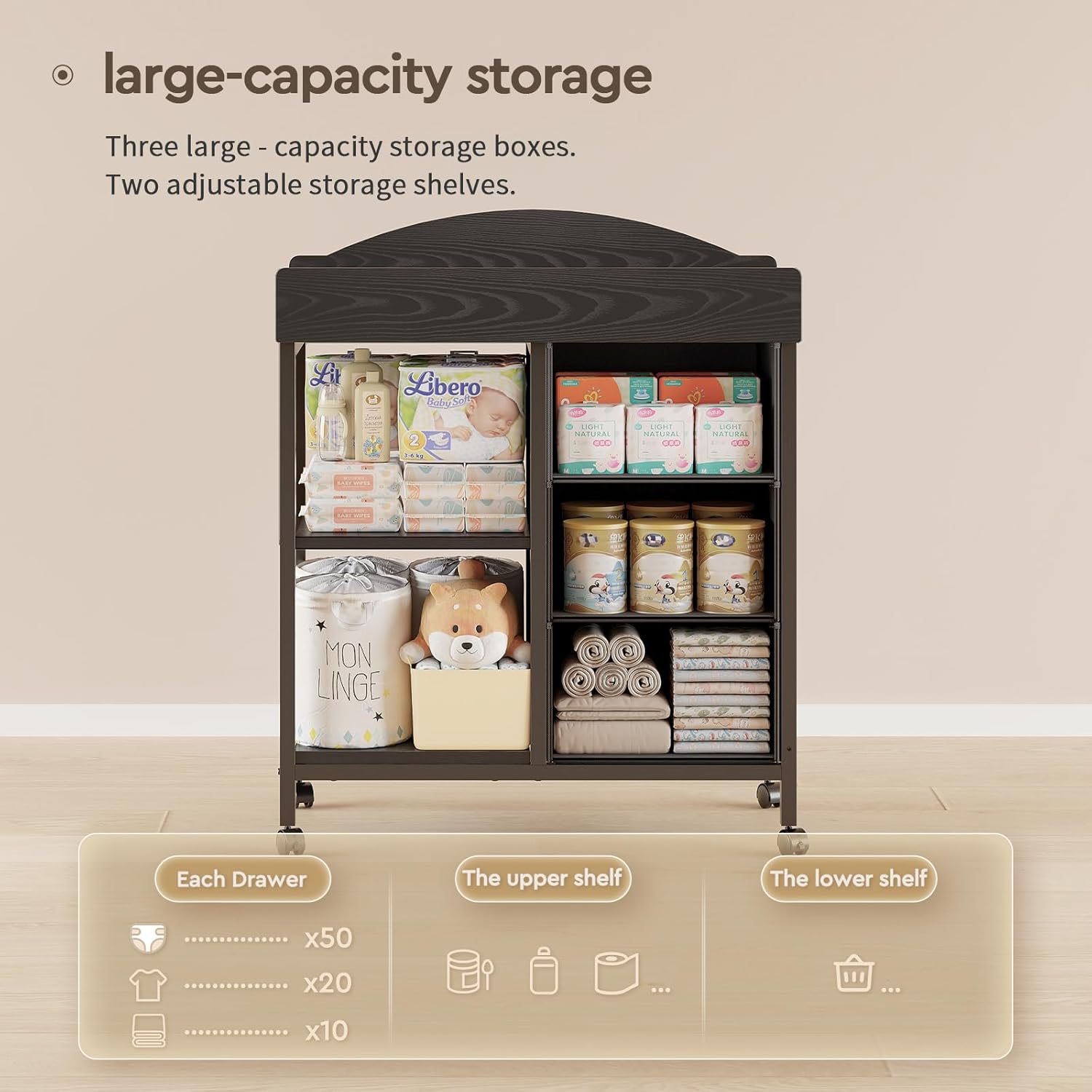 - Large Storage Space:3 removable pull-out drawers and 2 shelves make it easy to store essentials such as diapers, body lotions, and baby clothes.When the baby grows up, it can also be used to display potted plants, books, and other items to decorate the room,the non-woven fabric is breathable and harmless, suitable for baby and teens.