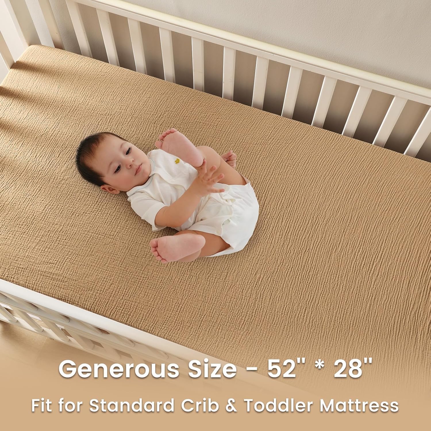- 100% Muslin Cotton: Our crib sheets are made of 100% muslin cotton, ultra soft, gentle and skin-friendly, perfect for delicate baby skin. 2-Layer muslin cotton features better moisture absorption and breathability, prevent over-heating, help keep baby feel refreshed and comfort all year round, and perfect for summer use.