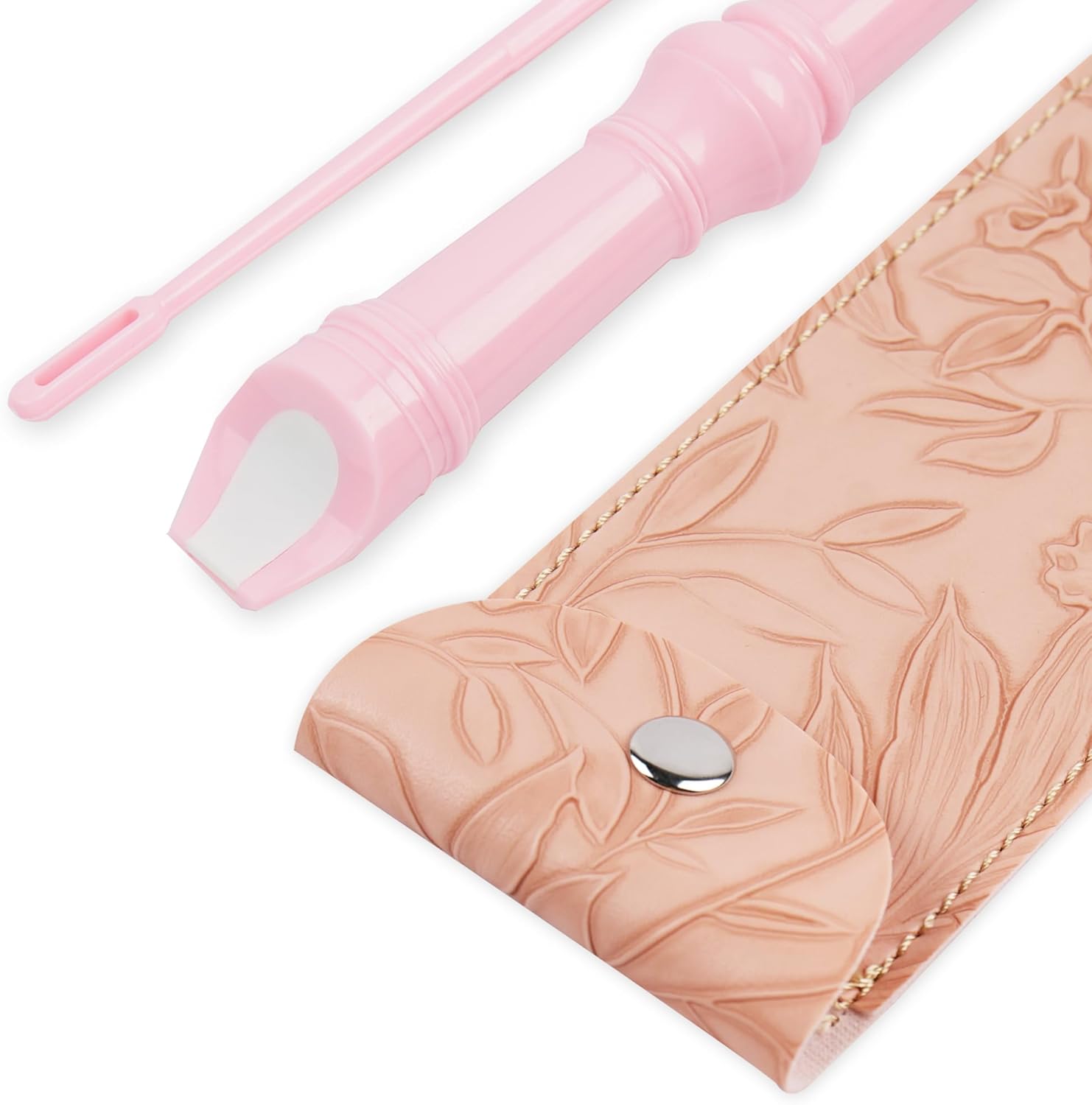 Recorder Instrument for Beginner Kids Adults,8-Hole Soprano Descant Recorder Music Flute with with Cleaning Rod & Leather Case For School Student Home Entertainment(2-Carved Pink)