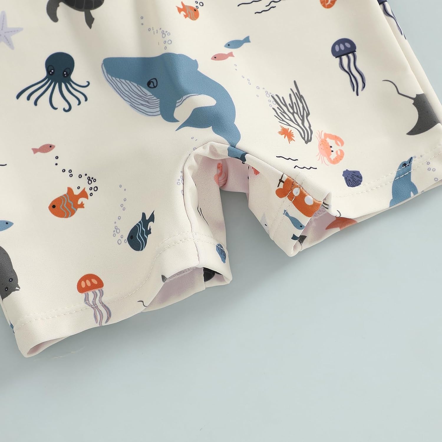 - Design: Toddler bathing suit boy, infant long sleeve swimsuit boy, round neck, back/front zipper closure for easy on and off, newborn swimsuit boy, dinosaur/marine animal print, super cute and lovely, your little boy will stand out in the crowd