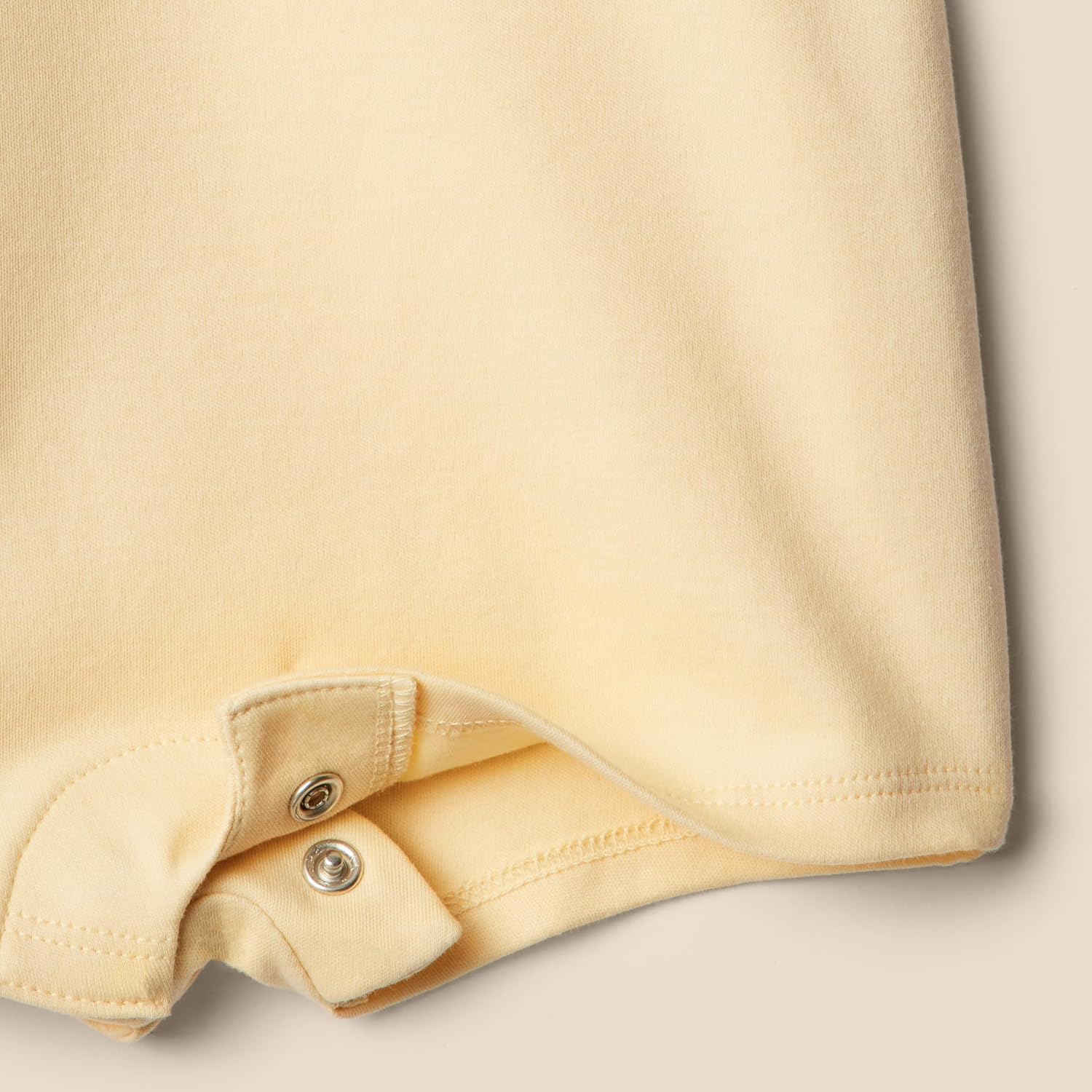- DETAILS: Features a polo collar with a snap front placket and gusseted snap closure at leg opening