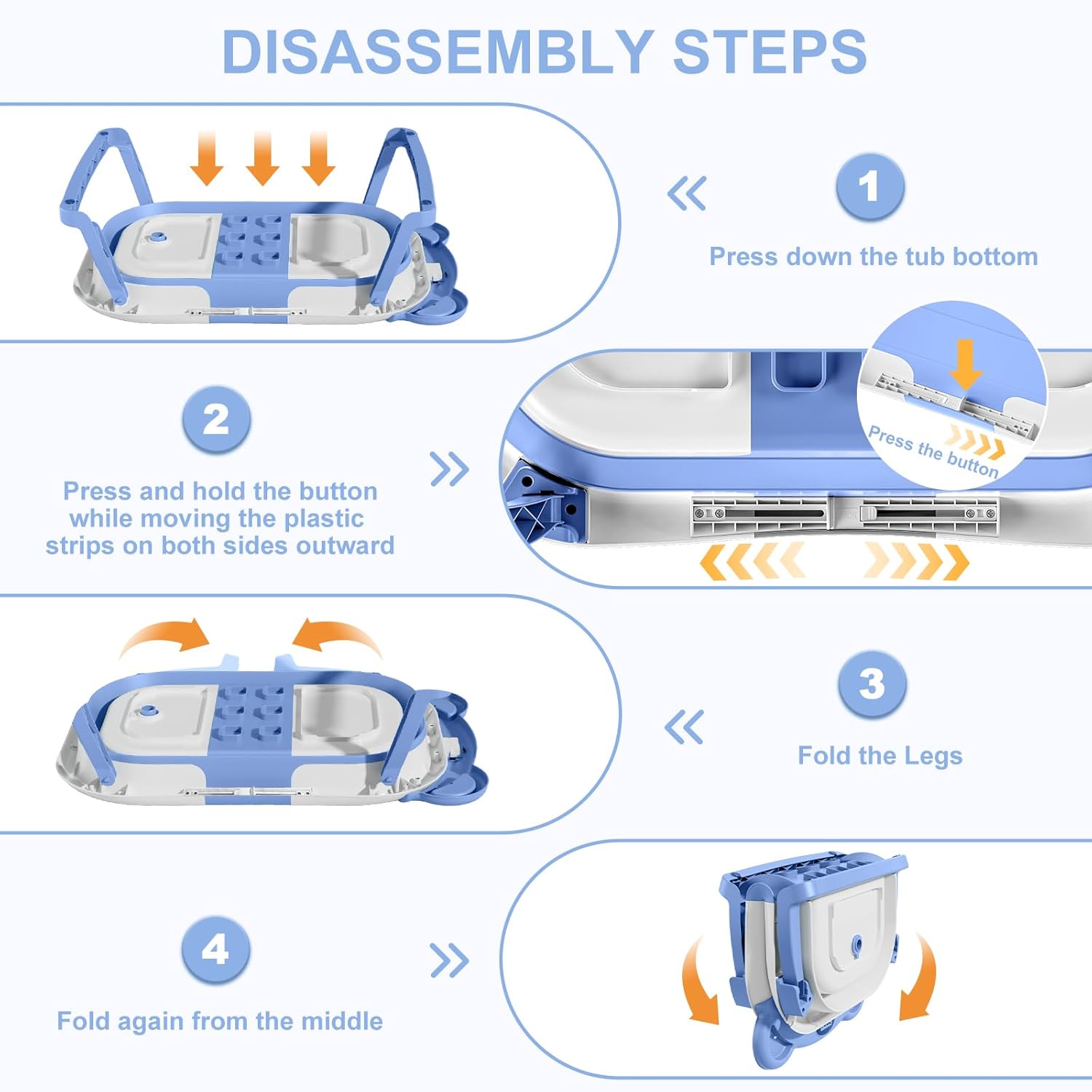 - 【Double-Fold Collapsible Design】Our upgraded baby bath tub can be effortlessly folded in just two steps to a thickness of under 4 inches. It even folds in half, enabling convenient storage in any corner, making it a space-saving solution.