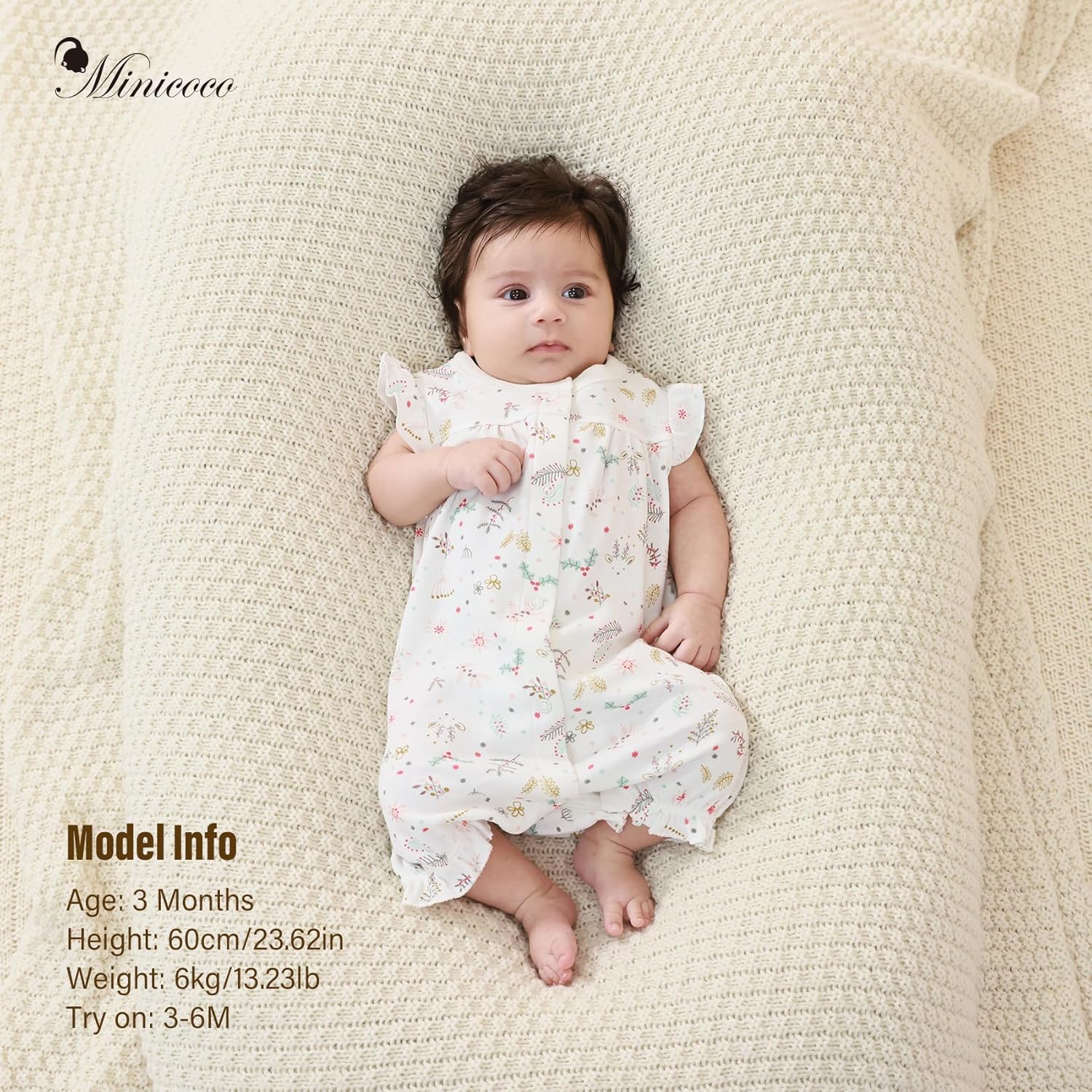 - Ultra-Soft 100% Cotton & Summer-Breathable: Made from premium 100% cotton, Minicoco’s romper is incredibly soft, gentle on baby's delicate skin, and features a lightweight, breathable design for cool summer comfort.