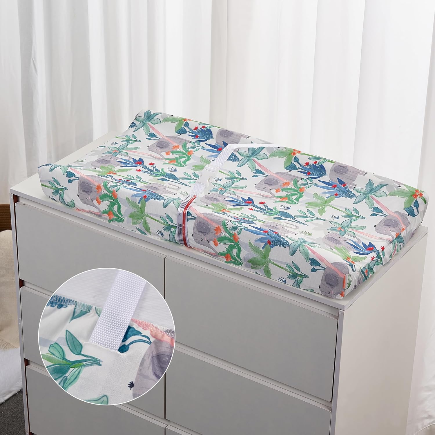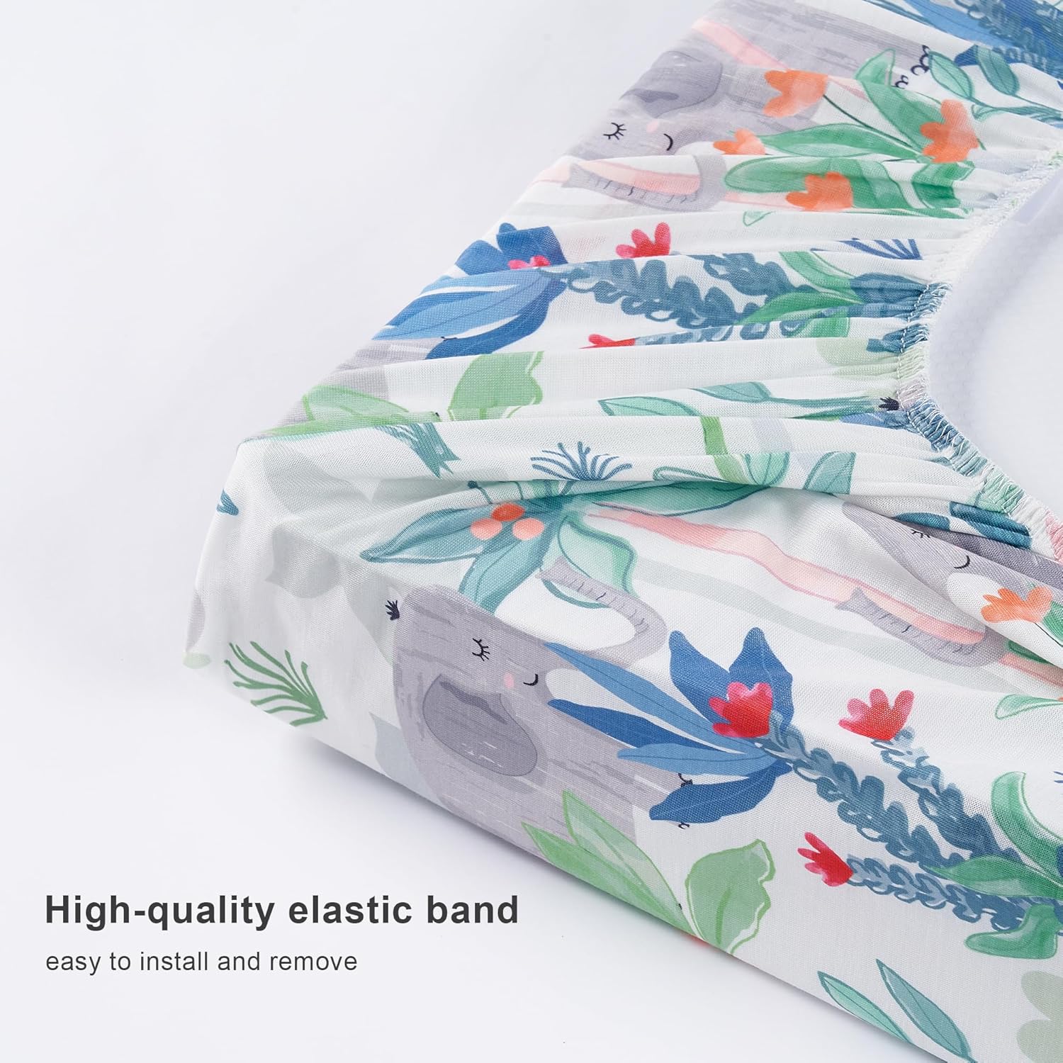 TILLYOU Baby Changing Pad Cover, Changing Table Cover for Girls Boys, Ultra Soft Breathable, 2 Pack Rainforest Elephant & Grey