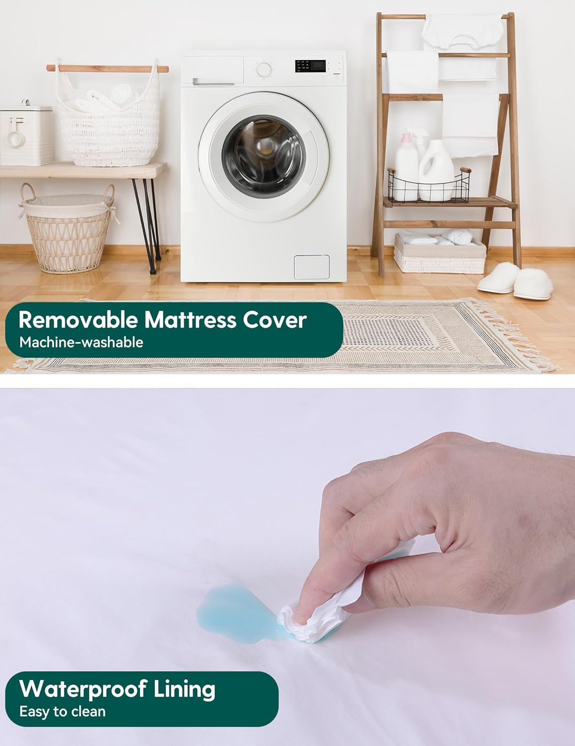 - 【Easy to Clean】The zipper mattress cover is easily removable and machine washable, while the waterproof inner lining makes cleaning up any messes or accidents a breeze