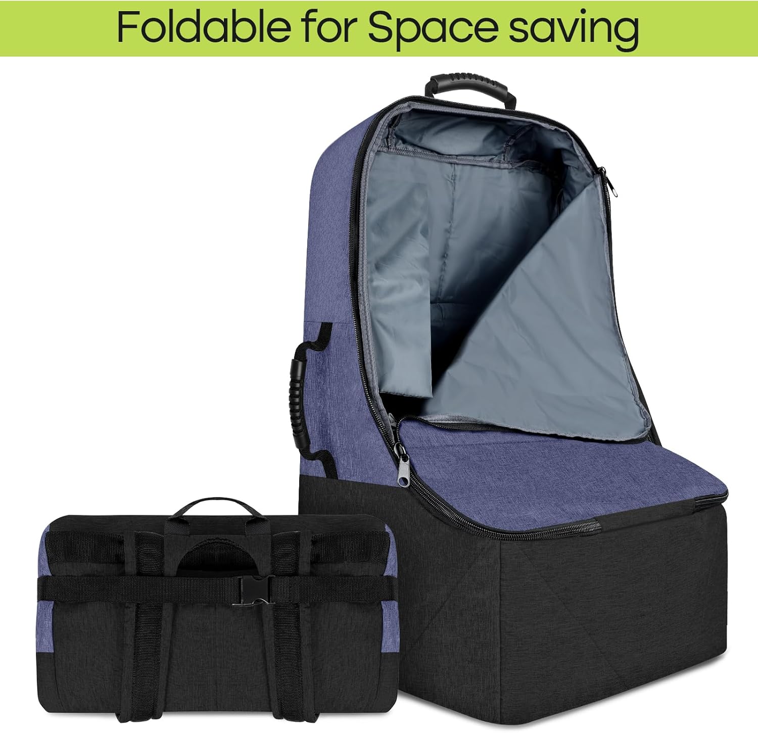 Padded Car Seat Travel Bag for Airplane, Heavy Duty Backpack for Air Travel, Water-Resistant Carrier with Shoulder Strap, Fits Most Car Seats (Blue+Black)