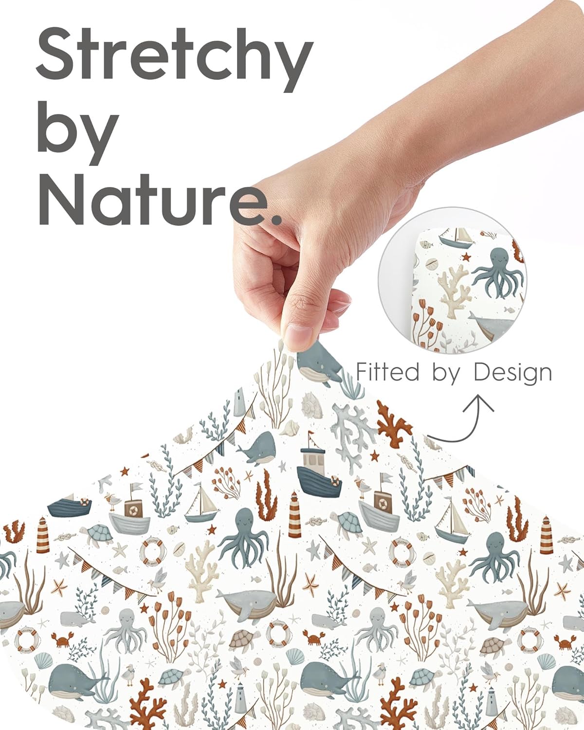 Extra Stretchy Changing Pad Cover, TotBasic Ultra Soft Premium Jersey Knit Changing Pad Sheets, Unisex for Boys Girls, Fits All Standard Changing Tables/Dresser Tops - 2 Pack (Dino + Whale)