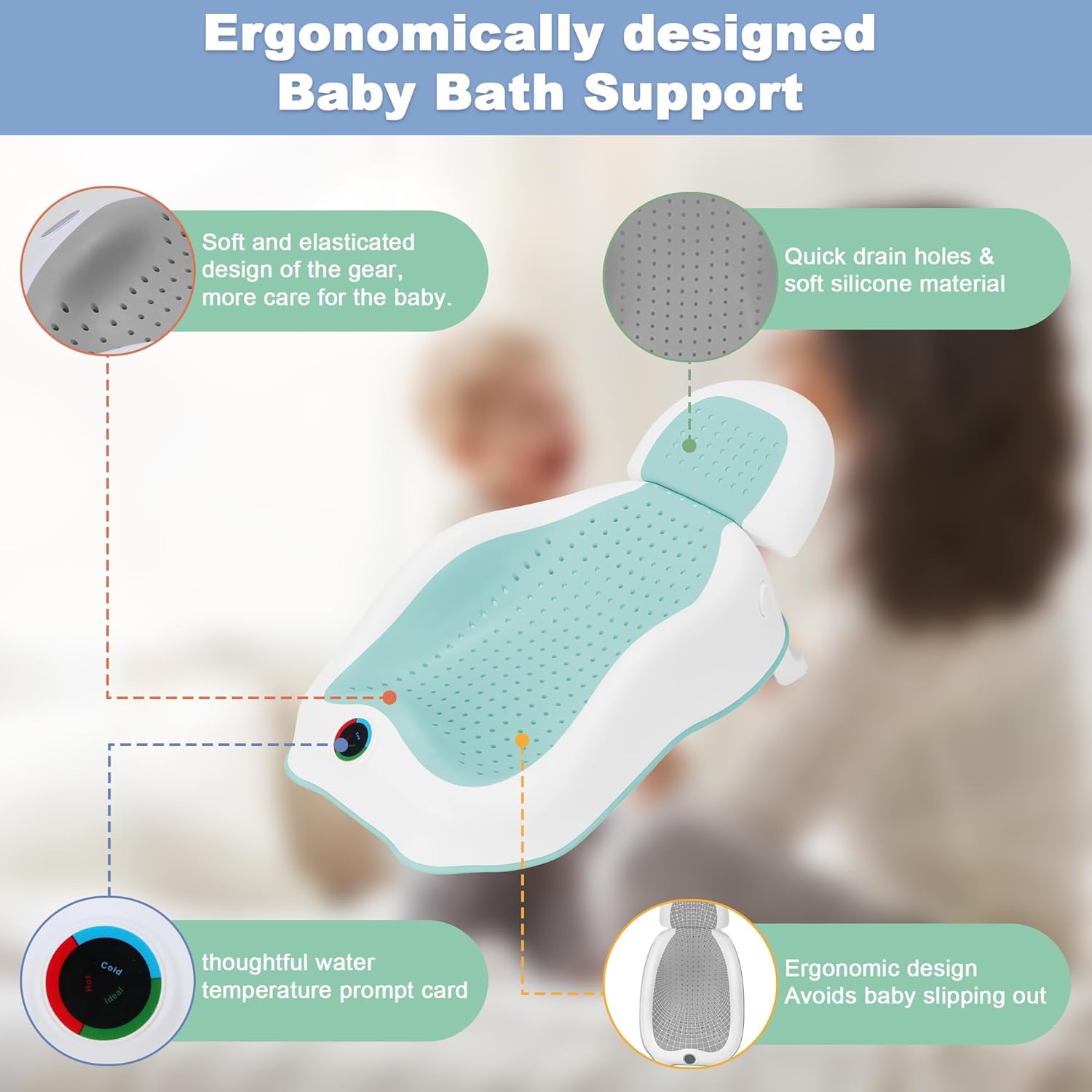 Baby Bath Support,Ideal for Babies Less Than 6 Months Old,with Thermometer-Adjustable Slope Newborn Bathtub, Baby tubs for Baby tubs for Newborn Essentials Must Haves (Green)
