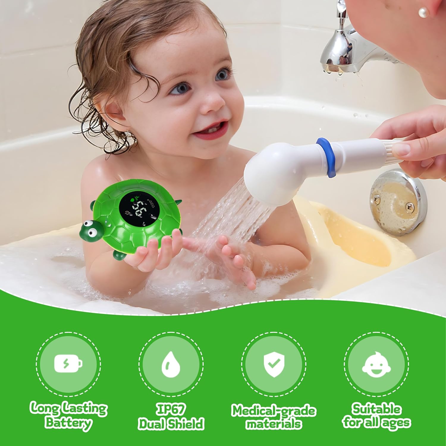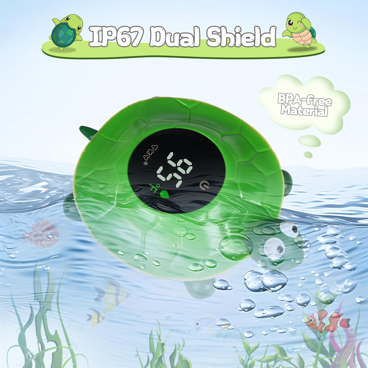 TKY Baby Bath Thermometer with LED Display-Rechargeable Water&Room Temperature Monitor, Floating Toy with Temp Alert, Waterproof for Newborns, Nurseries - Must Have Bath Essentials (Green Tortoise)