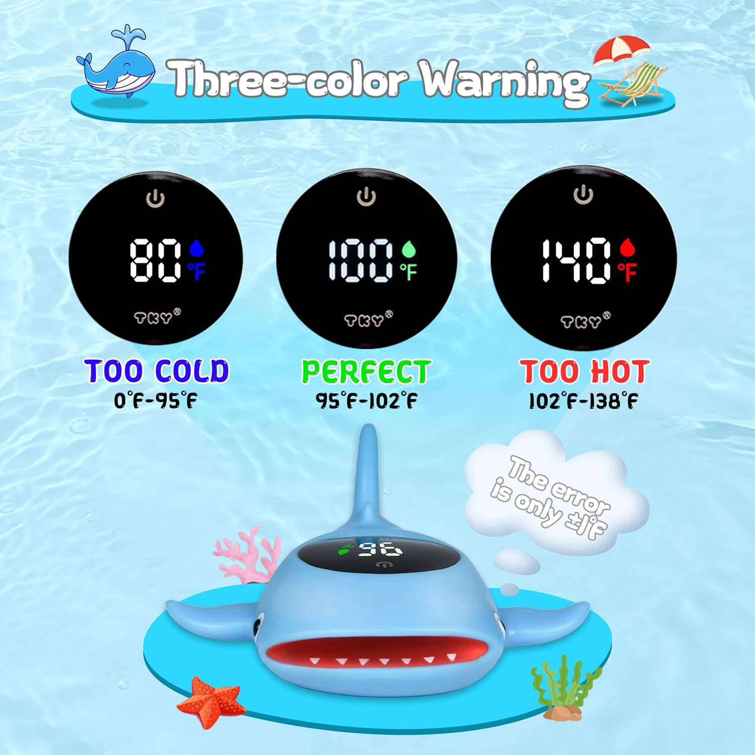 TKY Baby Bath Thermometer with Floating Toys - Digital Water & Room Temperature Monitor, Rechargeable Thermometer with Alerts for Newborn Bath Essentials, Infant Safety