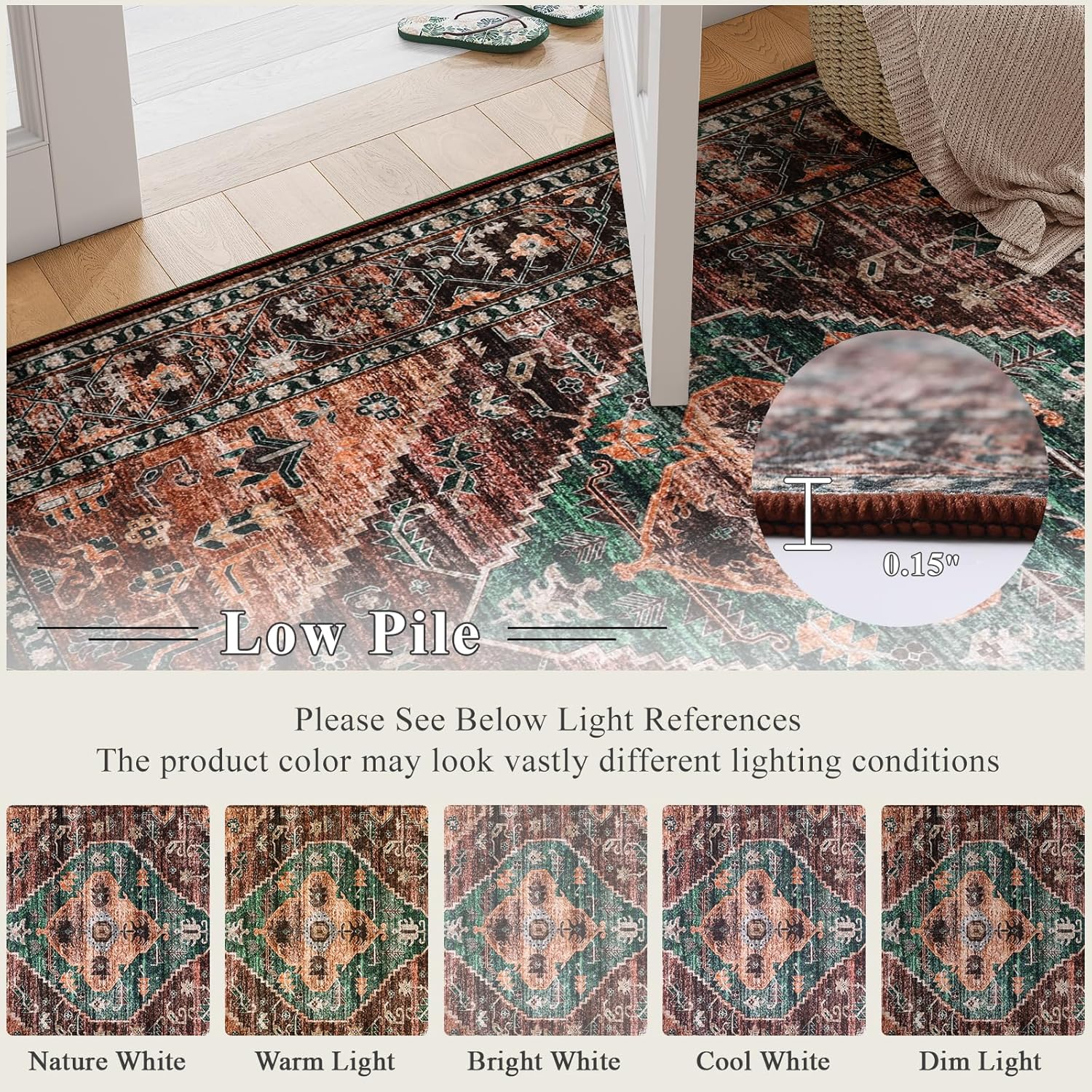 Lahome 6x9 Rugs for Living Room - Washable Non-Slip Ultra-Thin Living Room Carpet, Non-Shedding Oriental Vintage Distressed Carpet Rug for Dining Room Bedroom Office