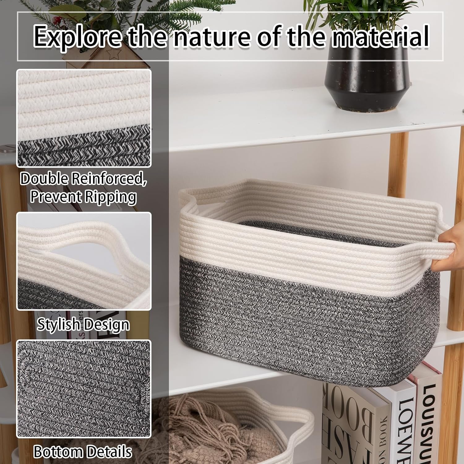 - Woven basket with handles: With reinforced stitching on the handles allow for convenient and comfortable carrying of heavy loads around the house