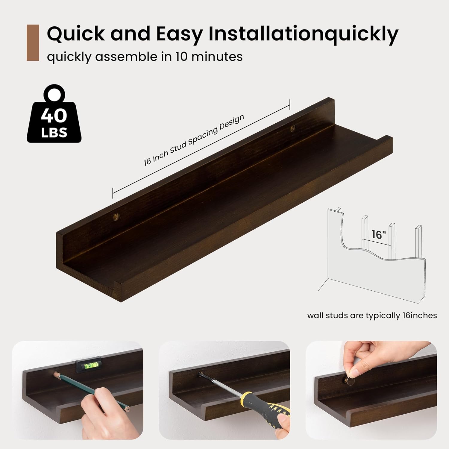 - Easy to Install: Fun Memories fully assembled solid pine wood picture ledge shelf set of 2 comes with the pre-drilled holes and necessary hardware including a mini level to make installation a breeze. The floating design creates a seamless, streamlined look, adding a touch of modern sophistication to your interior. If you have any questions about our products, please feel free to contact us