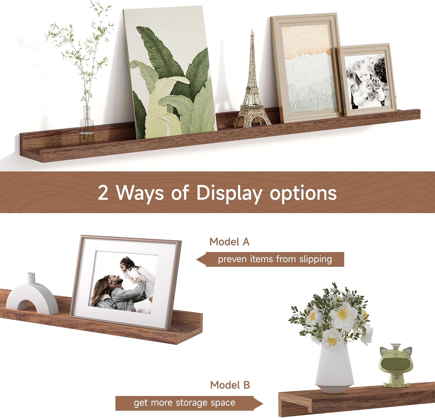 Picture Ledge Shelf for Wall, Floating Shelves Set of 4, 36 Inch Long Nursery Book Shelves for Toys Storage, Kids Bookshelf Wall Mounted for Books Photo Frames, Walnut