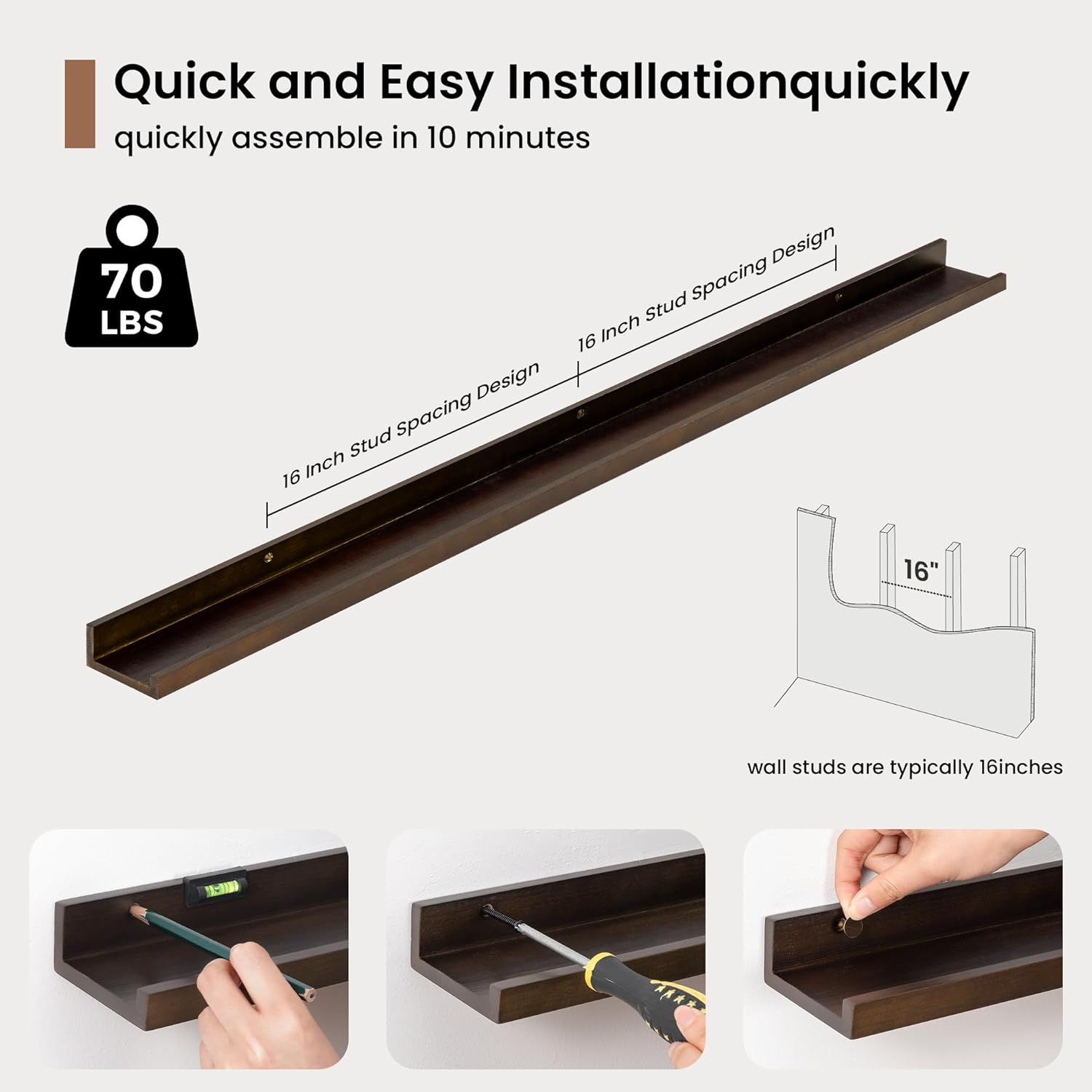 - Easy to Install: Fun Memories fully assembled solid pine wood picture ledge shelf set of 2 comes with the pre-drilled holes and necessary hardware including a mini level to make installation a breeze. The floating design creates a seamless, streamlined look, adding a touch of modern sophistication to your interior. If you have any questions about our products, please feel free to contact us