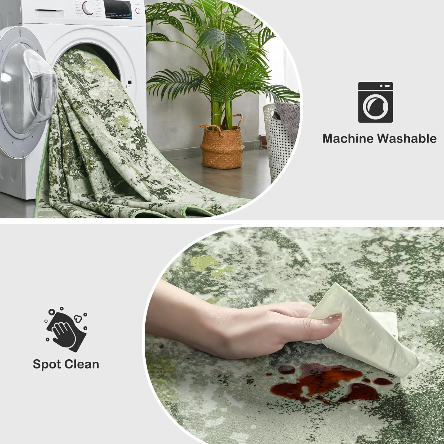 - Machine Washable Rug with Hydrophobic Technology: Designed for 50+ machine washes without fading, and spills disappear with one wipe thanks to water-repellent surface. Perfect for busy households with kids or pets