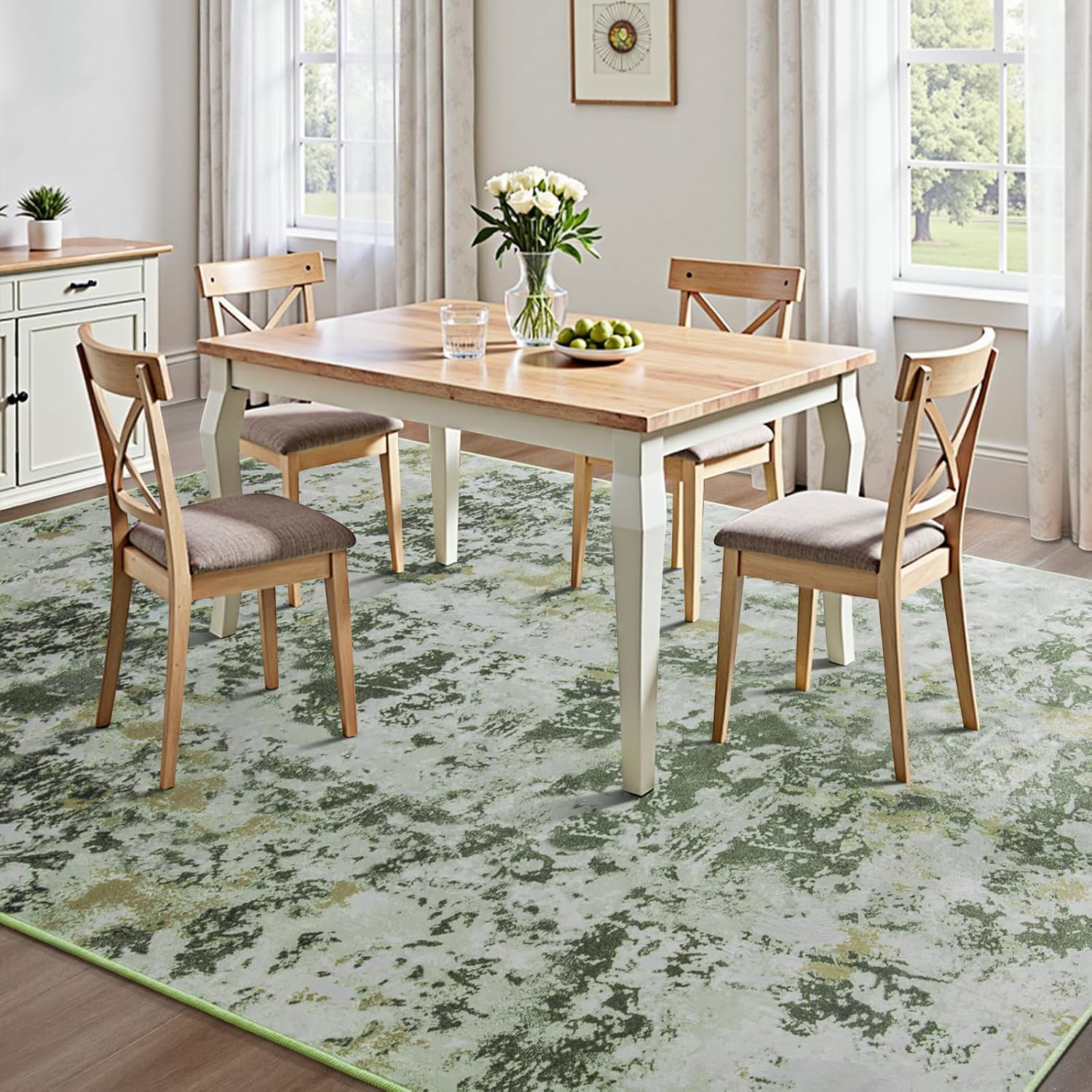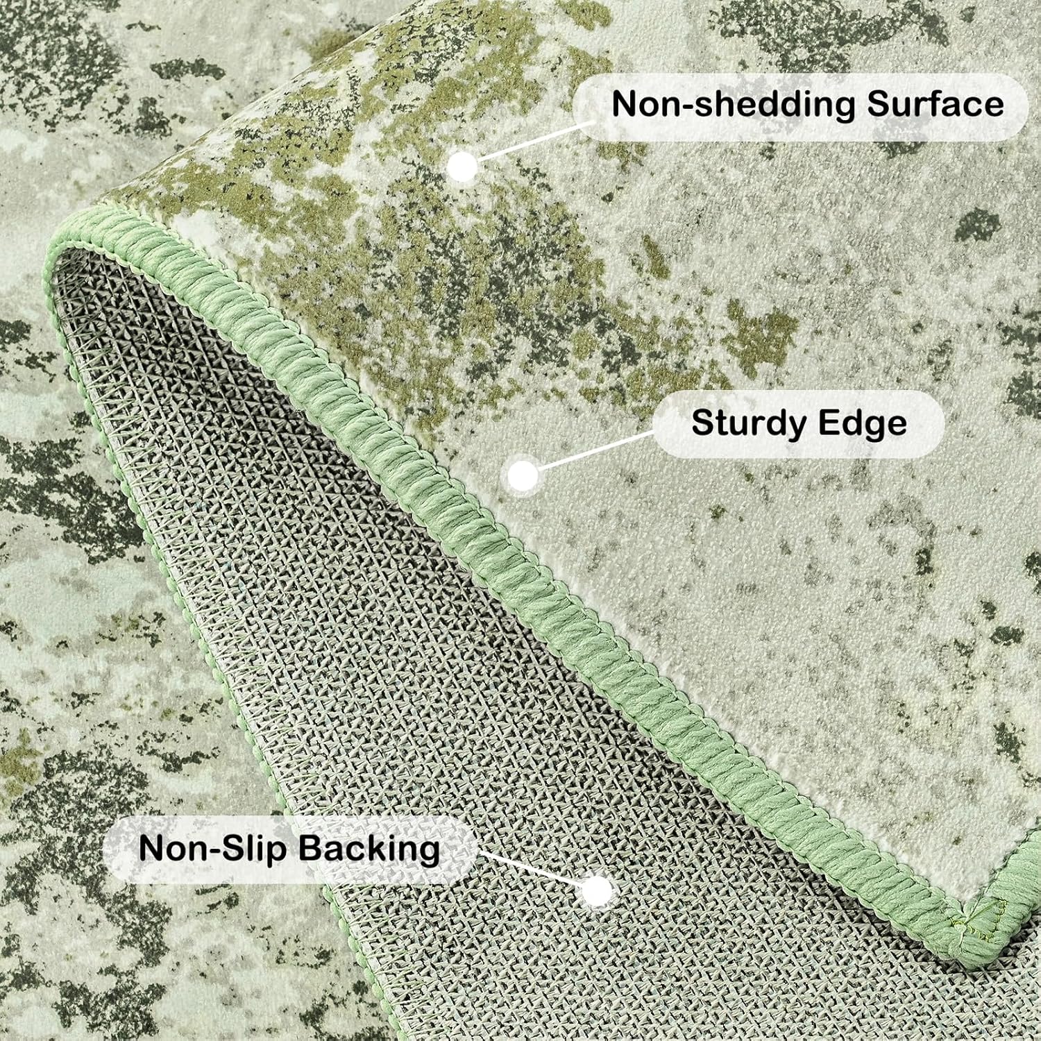 Kelarea 4x6 Rug for Living Room, Green Washable Non-Slip Rugs, Low Pile Soft Modern Abstract Carpet for Bedroom, Kitchen, Dining Room, Classroom, Dorm, Nursery, Home Office