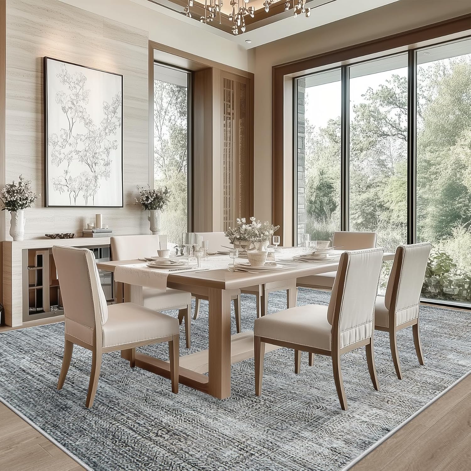 8x10 Area Rug Living Room Rugs - Washable Rug Large Modern Abstract Soft Thin Carpets Indoor Floor No Slip Vintage Carpet for Bedroom Under Dining Table Nursery Home Office Decor Gray Blue