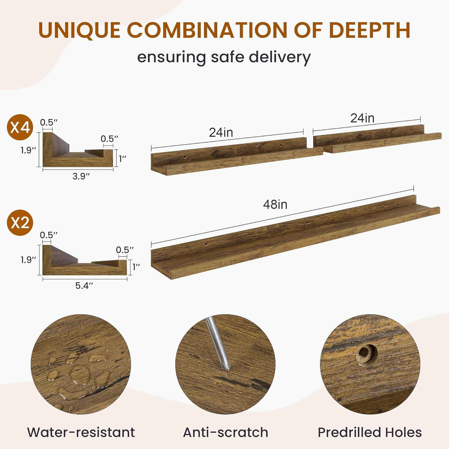 - Ledge Shelf with Lip Protection: Our every picture ledge shelf has a carefully designed front lip, which provides extra protection for your items to prevent them from slipping or falling off. You can rest assured that your favourite books, plants, picture frames, or decorative items are securely in place