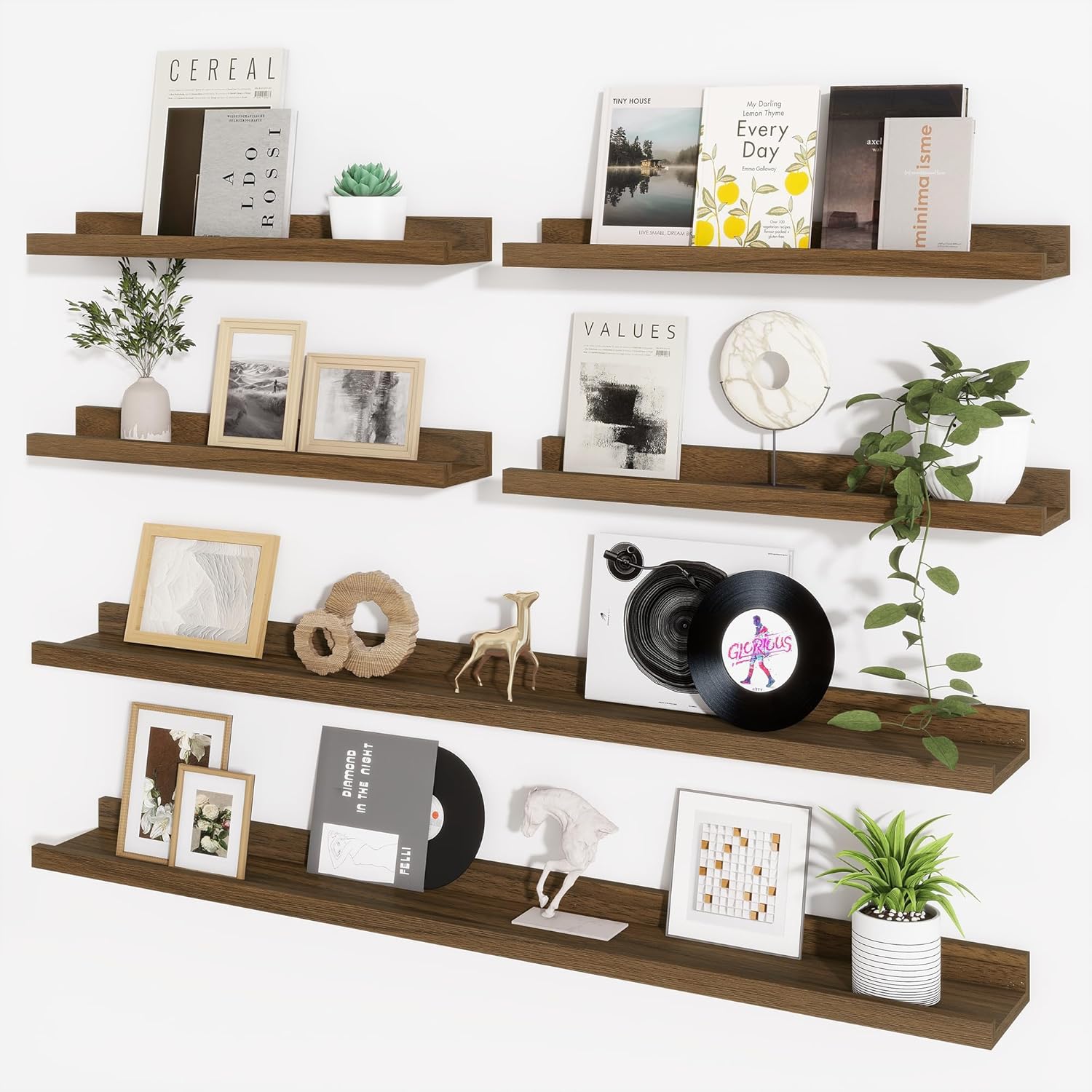 Axeman Picture Ledge Shelf, Floating Shelves for Wall Decor Storage Set of 6, 48 inch Floating Wall Mounted Shelves, Wall Shelves with Lip for Living Room, Bedroom, Nursery, Bathroom, Kitchen, Walnut