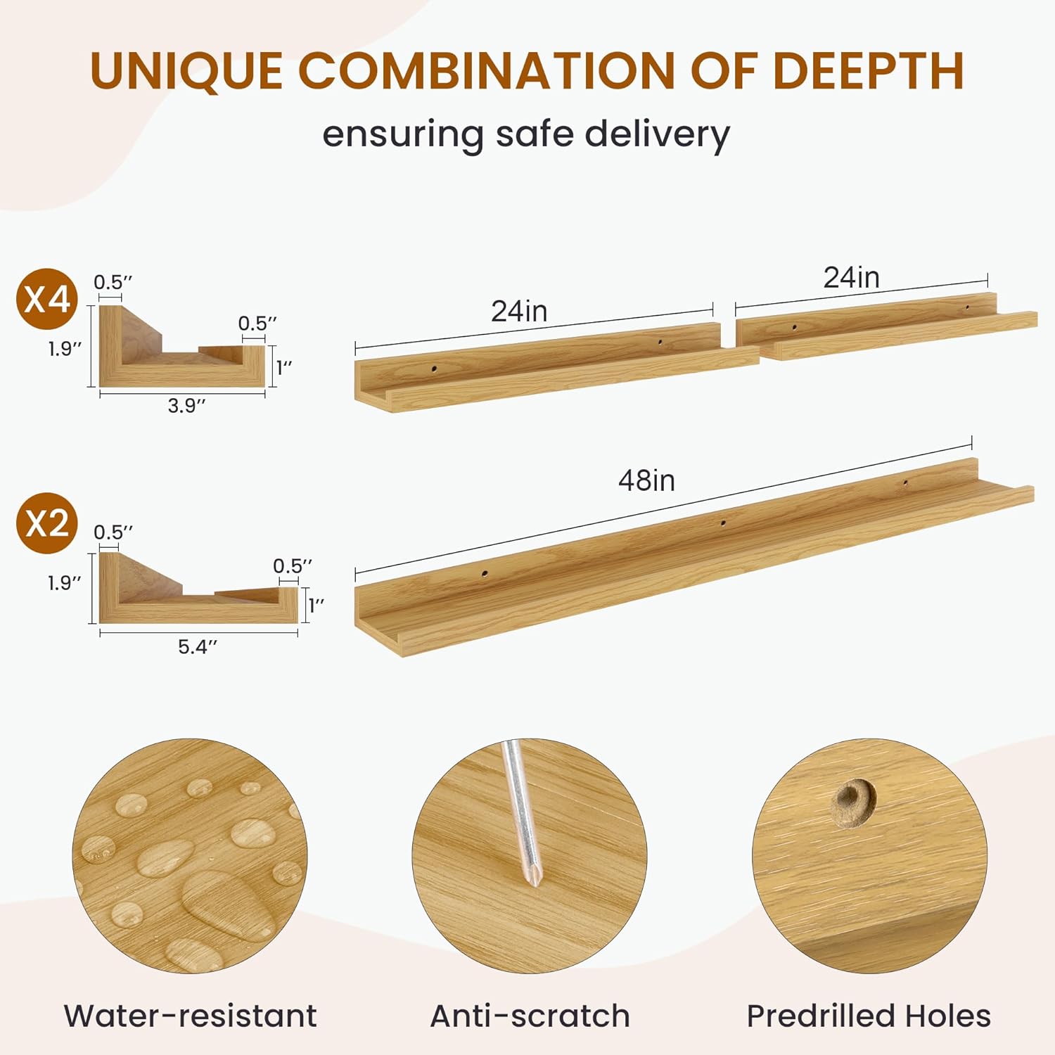 - Ledge Shelf with Lip Protection: Our every picture ledge shelf has a carefully designed front lip, which provides extra protection for your items to prevent them from slipping or falling off. You can rest assured that your favourite books, plants, picture frames, or decorative items are securely in place