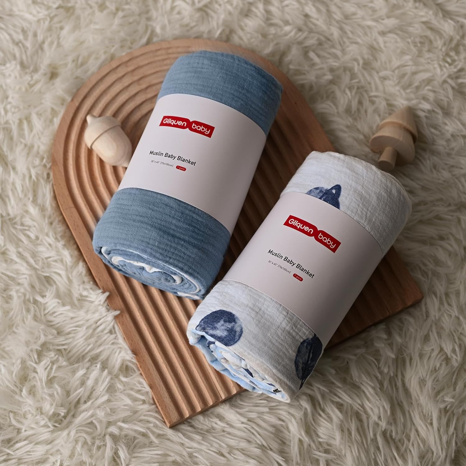 GLLQUEN BABY Blankets for Unisex Boys Girls, 2-Pack Muslin Cotton Front Soft and Breathable, and Dotted Fleece Backing, Printed Bed Nursery Minky Blankets for Toddler Newborn, Space, 30 x 40 inches
