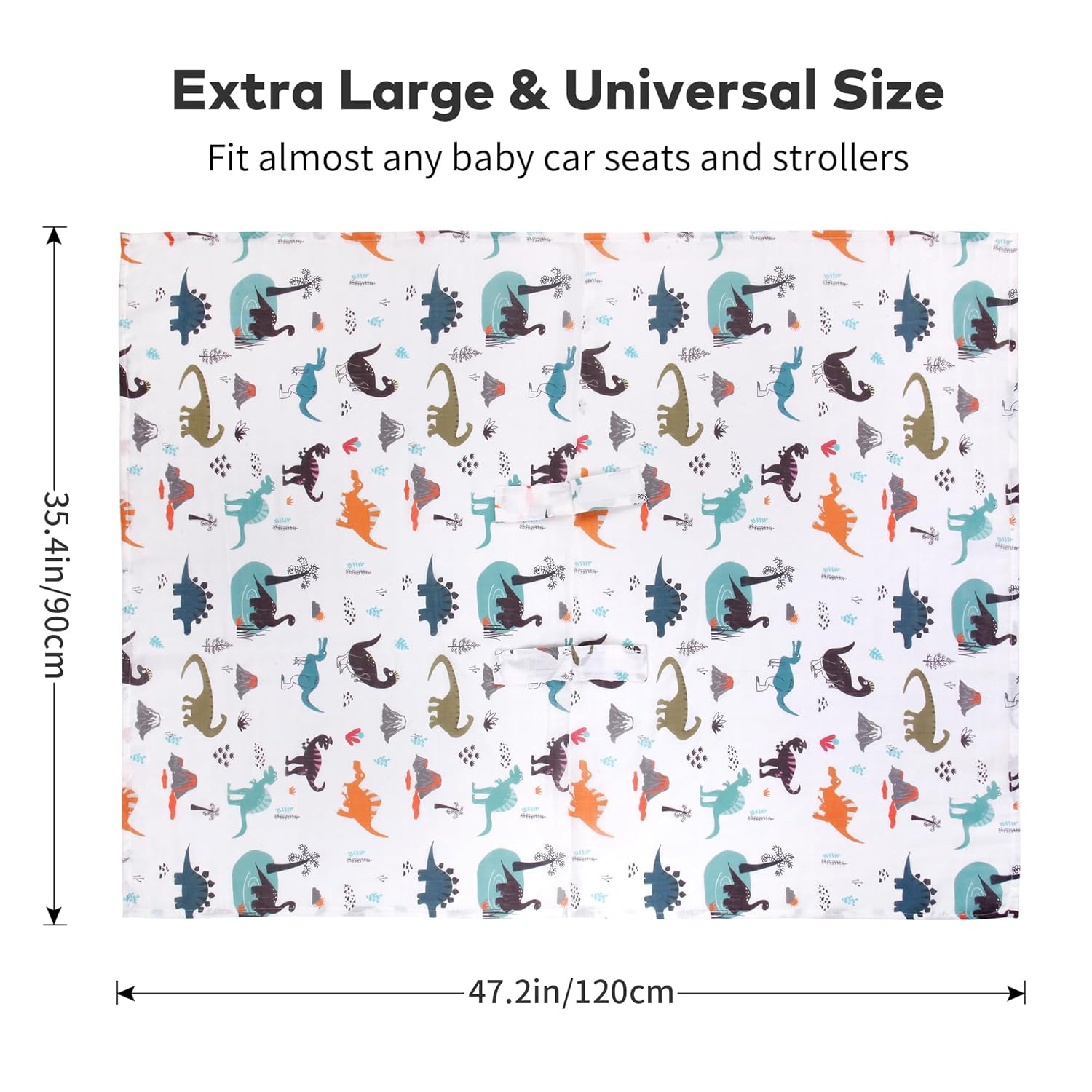 - UNIVERSAL LARGE SIZE: 47.2 inches L x 35.4 inches W, the muslin baby carrier covers are large enough to fit almost any baby car seats and strollers. Wash at low temperature, and the muslin fabric gets softer with every time