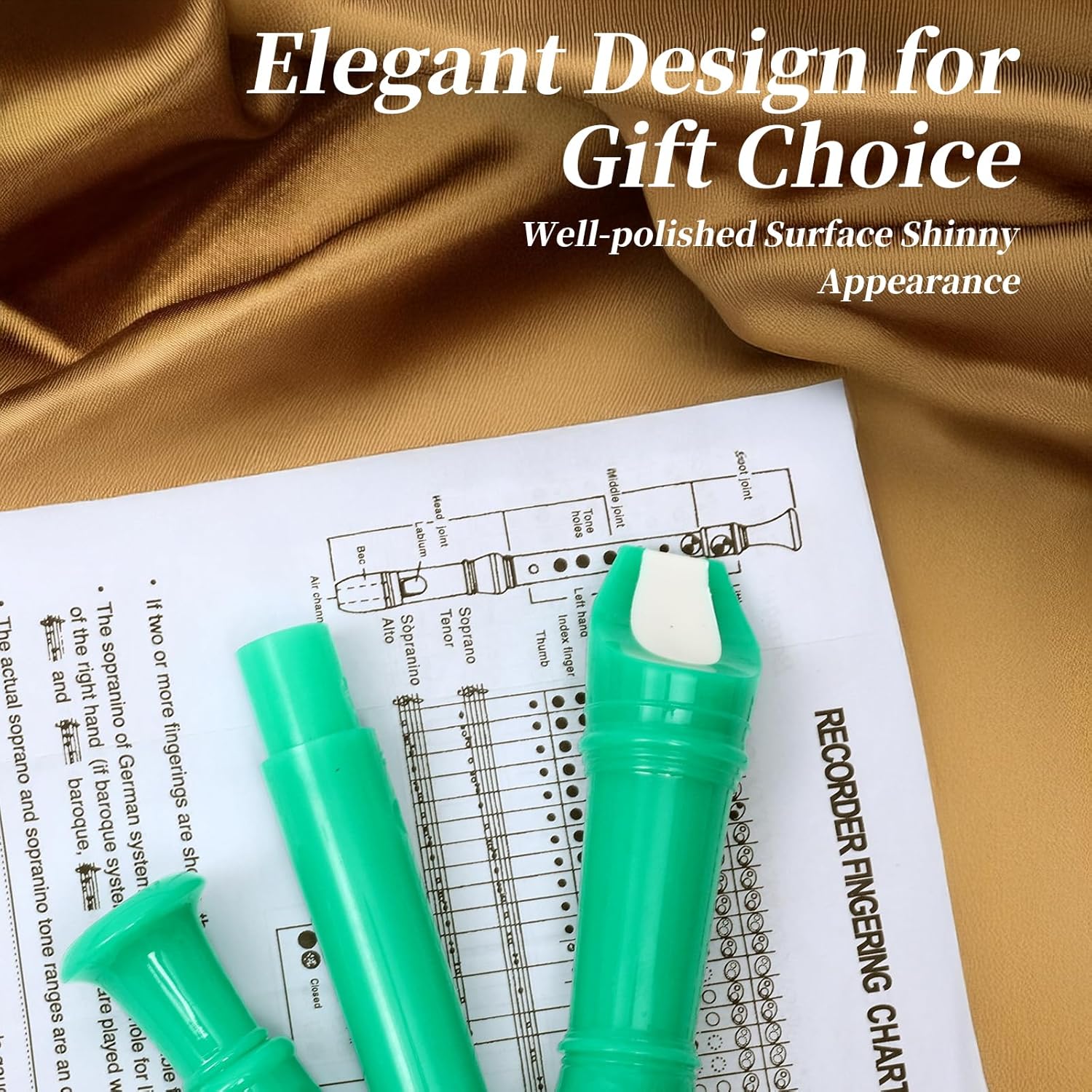 Soprano Recorder Instrument for Kids Beginners Student German Fingering C Key Recorder Instrument 3 Piece with Cleaning Rod and Bag Fingering Chart (bright green)