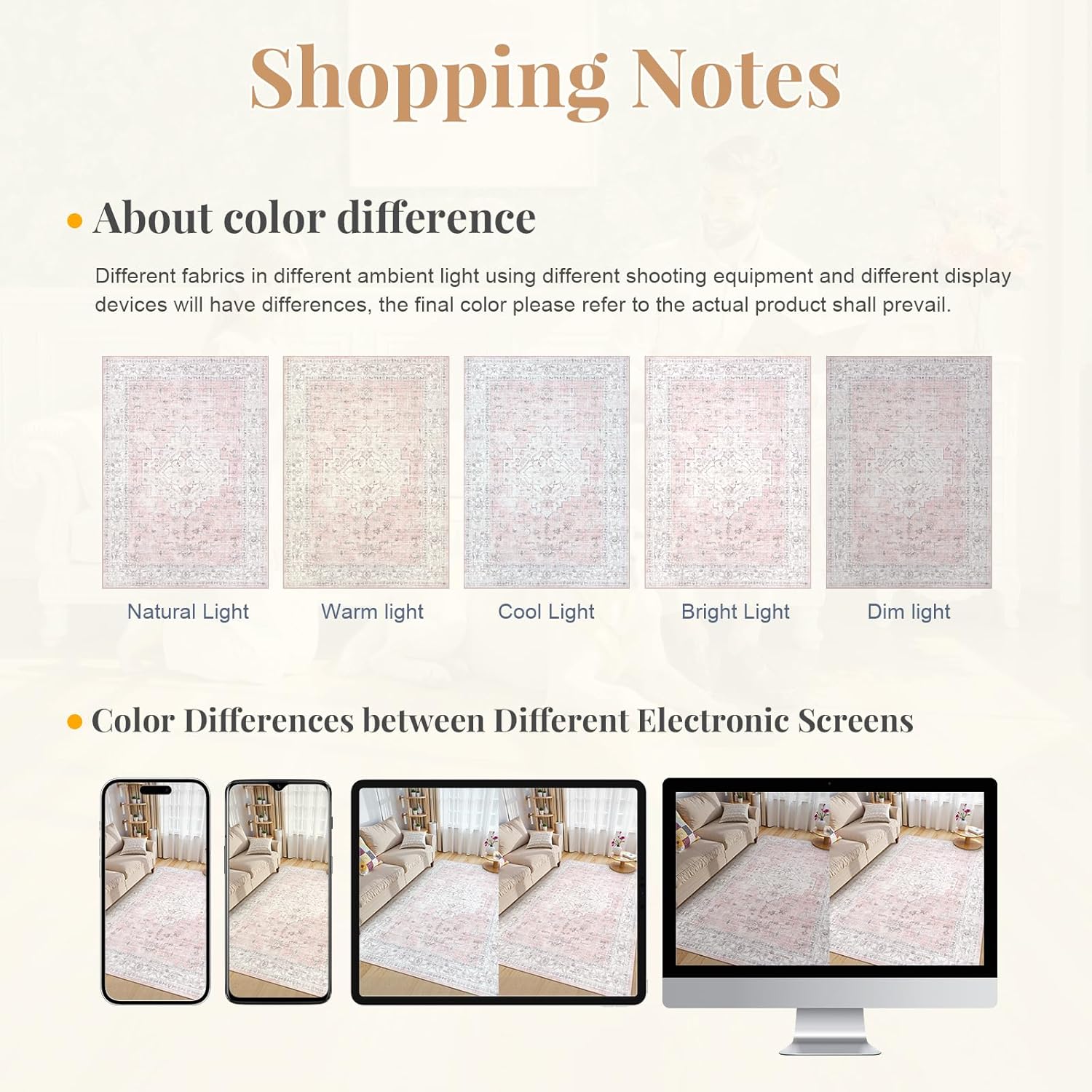 LIVEBOX Pink 10x14 Area Rug for Bedroom Girls, Boho Washable Rugs for Living Room Nursery, Non-Slip Indoor Soft Carpet Low-Pile Farmhouse Carpets for Dining Room Kids Playroom, Pink