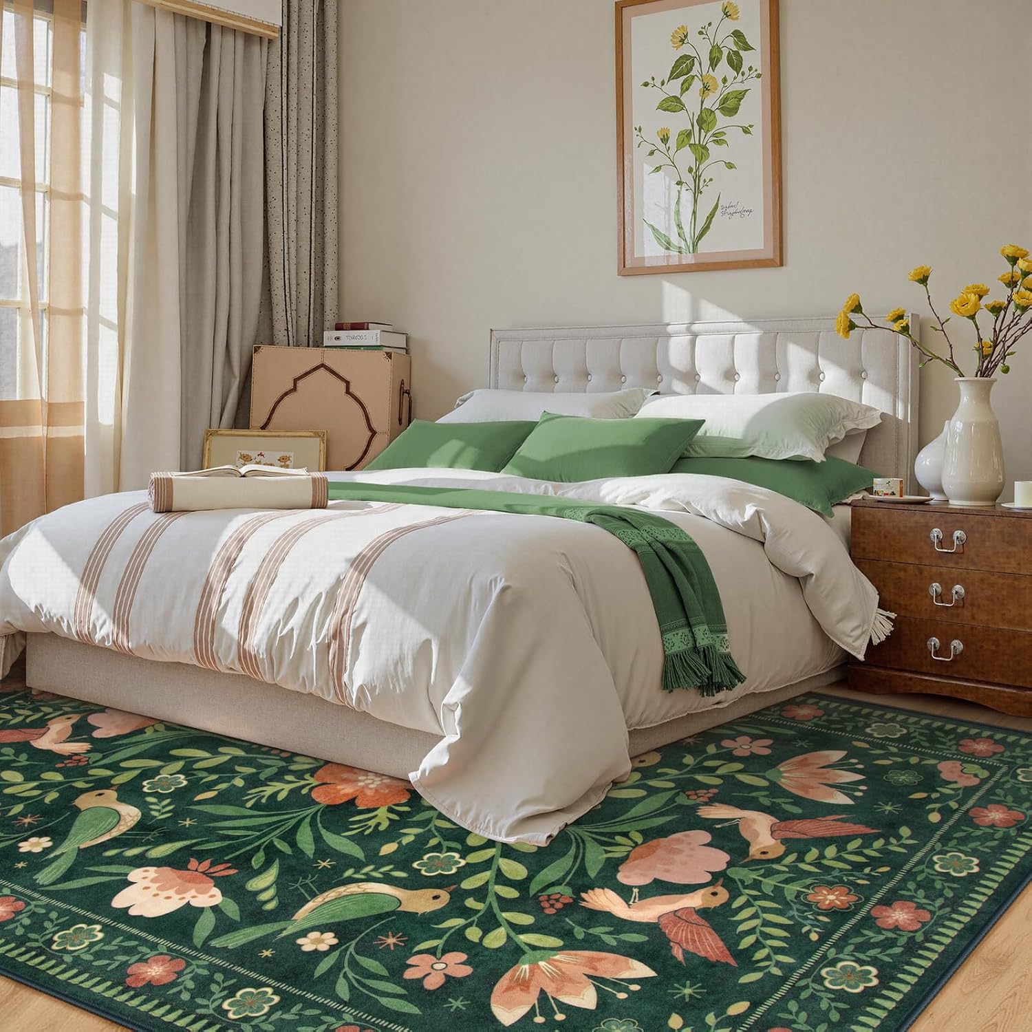 - [Bright and Elegant Design]: Featuring a beautiful bird and flower pattern with bright, vivid colors, our Moynesa rug adds a touch of elegance and charm to any room, effortlessly complementing a variety of décor styles