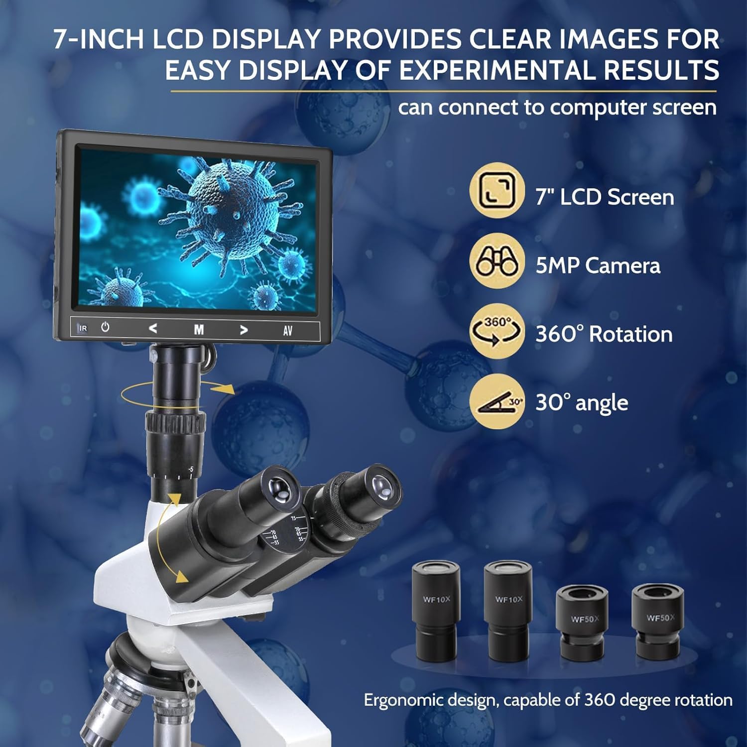 - [12MP display screen] 12MP display screen for capturing or displaying images on a computer or projector, showing your specimen photos with friends and family - share your excitement in microscope experiments.