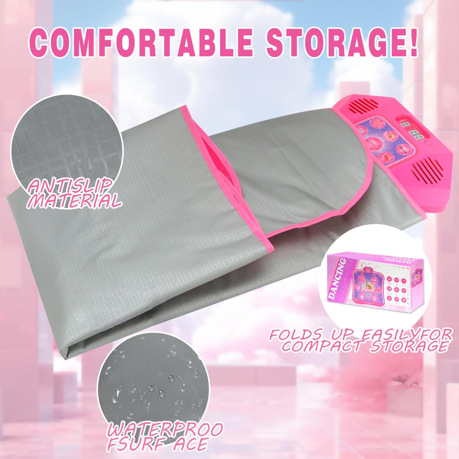 - PORTABLE MUSIC DANCE MAT: Easily folded wireless dance mat. Fun educational toy dance pad indoors or outdoors for children's hand-eye coordination and enhances parent-child interaction. Adults can also play. Requires 3 AA batteries(Not included)