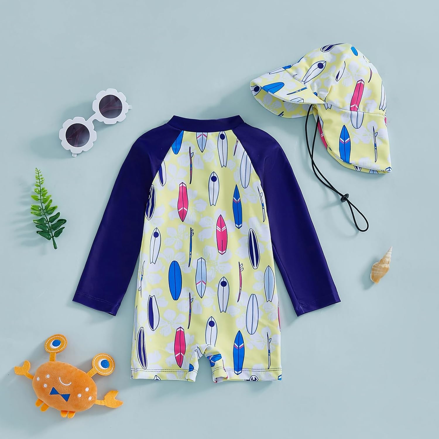 • What You Get: 1 x Baby/Toddler boy one piece swimsuit + 1 x Hat/NO. If you have any questions, you can feel free to contact us