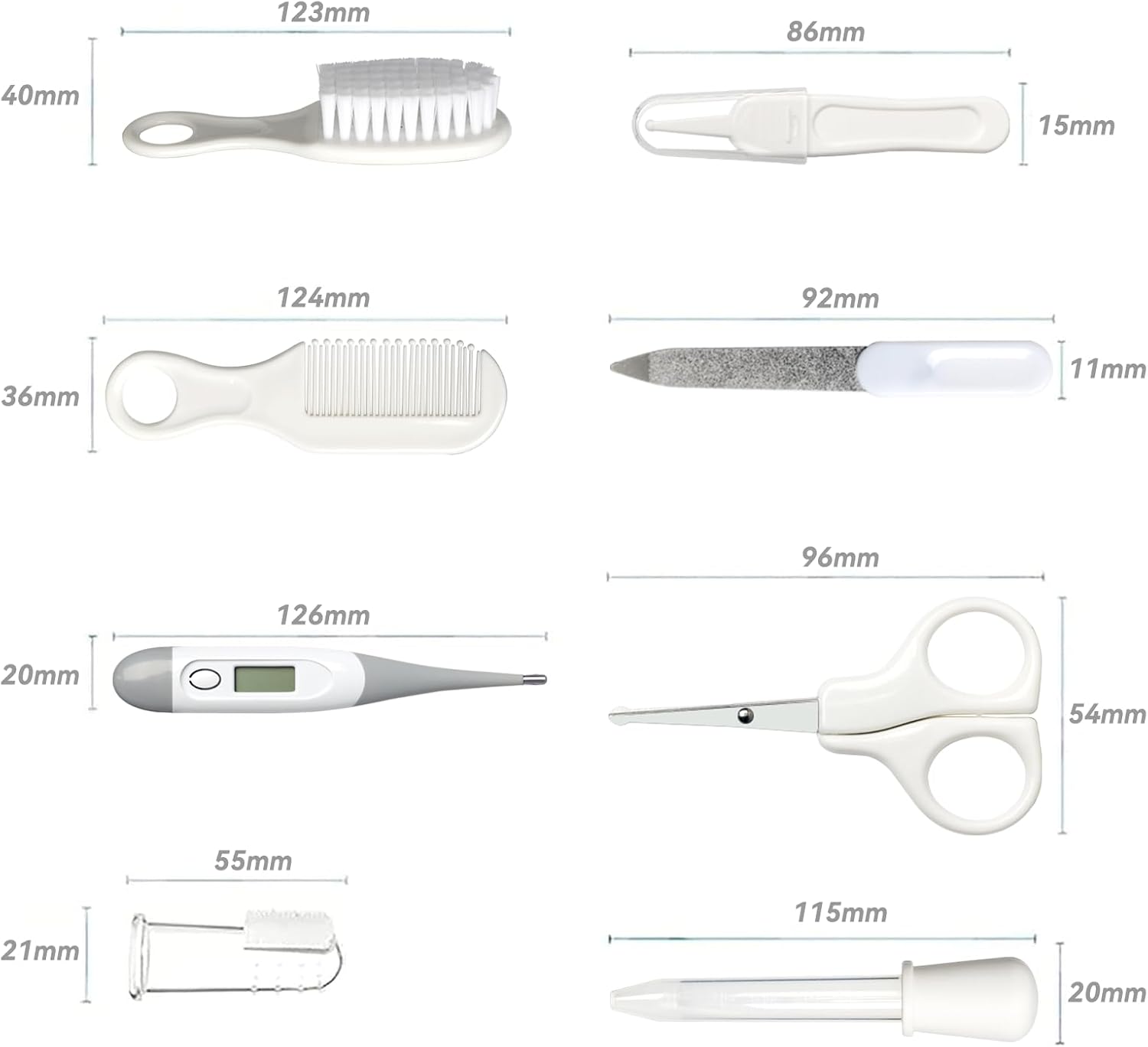 - Safe Baby Grooming Kit: In order to make every baby always get good grooming and health, we designed this grooming kit. The baby care kit are made of high quality stainless steel and BPA-free plastic, and it is safe to use to reassure parents.