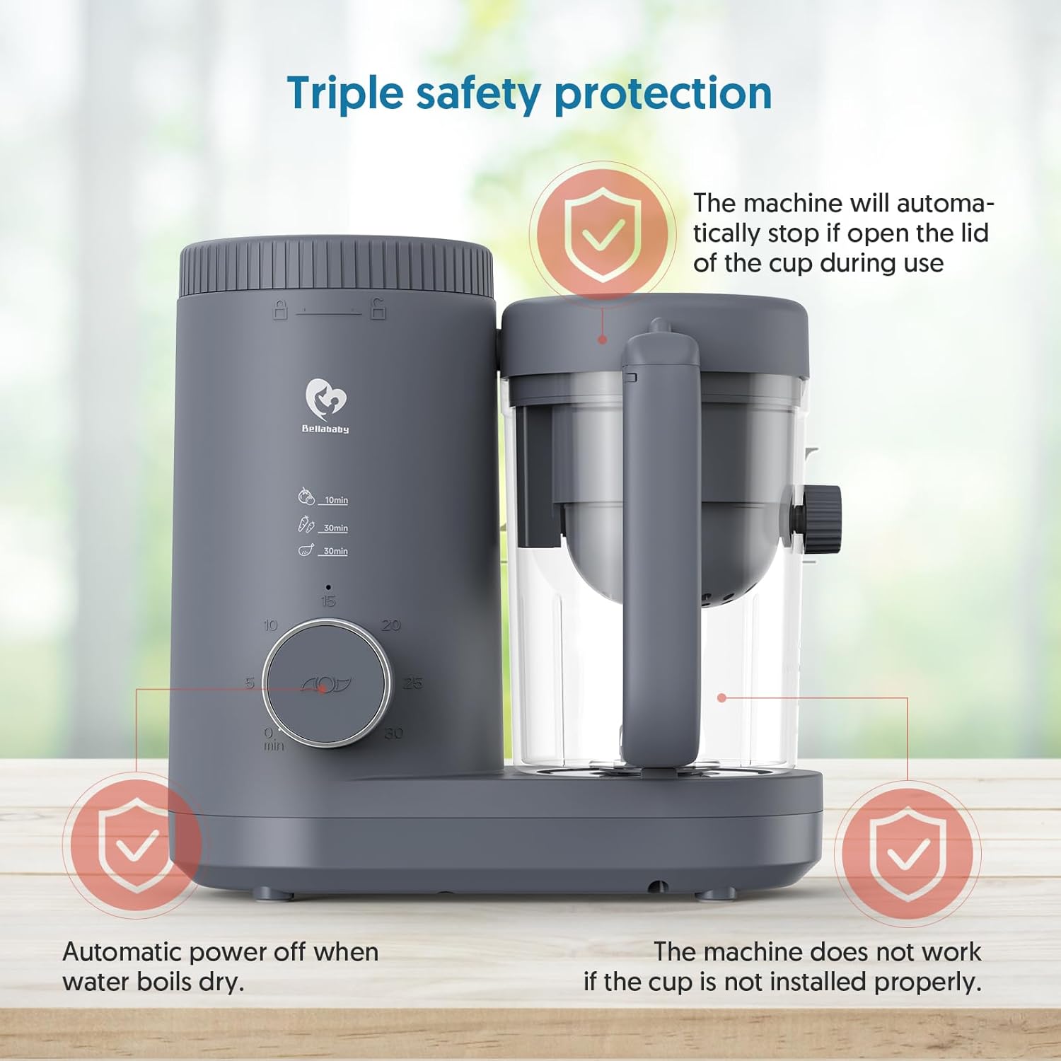 Baby Food Maker Bellababy Baby Food Processor, Puree Blender Steamer with Reversible Steam Basket, One Button Easy Operation & Large Opening for Easy Cleaning
