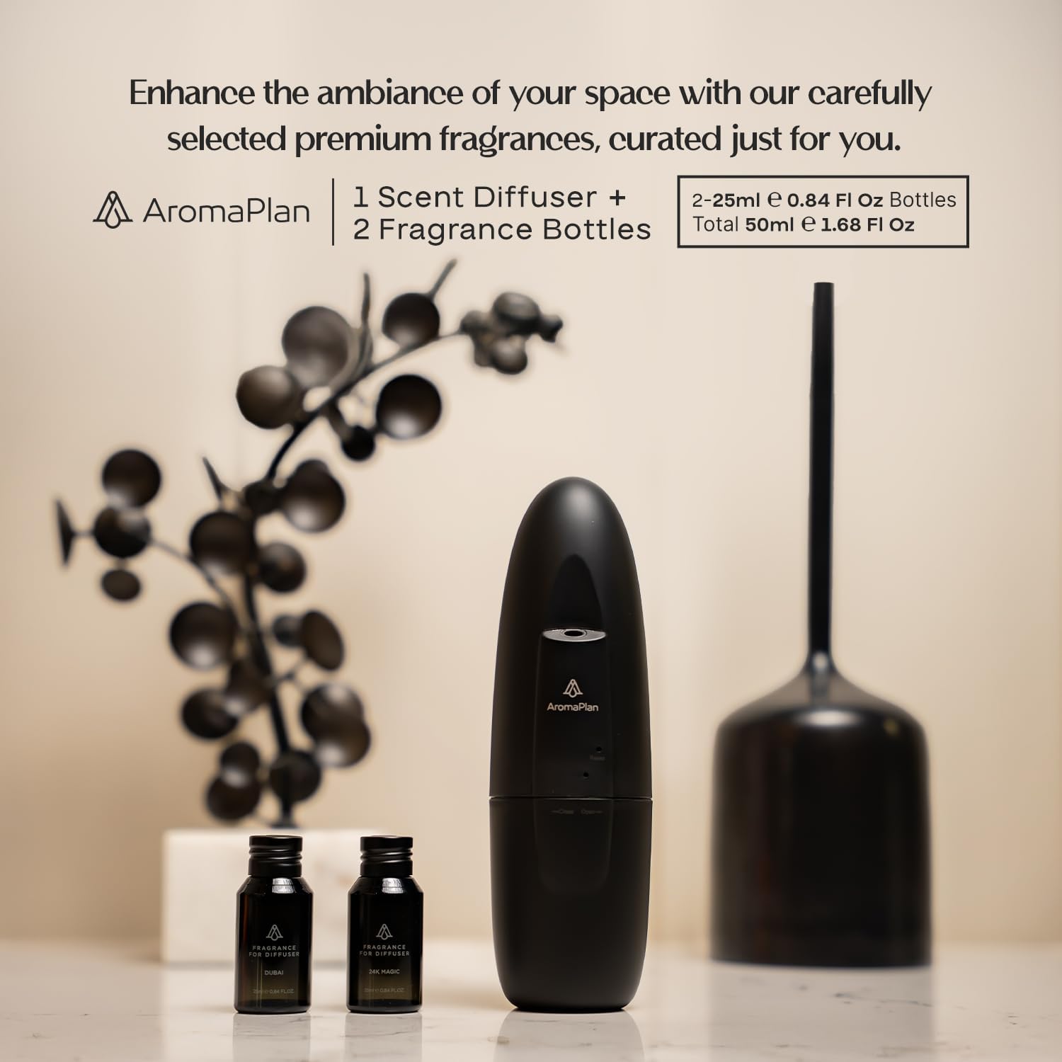 - LUXURIOUS WATERLESS PLUG-IN DIFFUSER WITH 2 FRAGRANCES – The AromaPlan Authentic 2025 Upgraded Plug-In Diffuser uses advanced NT10x nanotechnology to transform liquid fragrance into dry, vaporous microparticles, evenly scenting spaces up to 500 sq ft without water or oily residue. This set includes 1 Plug In + 2 bestselling 25ml fragrances—Dubai & 24 Knights—delivering fresh, invigorating scents.