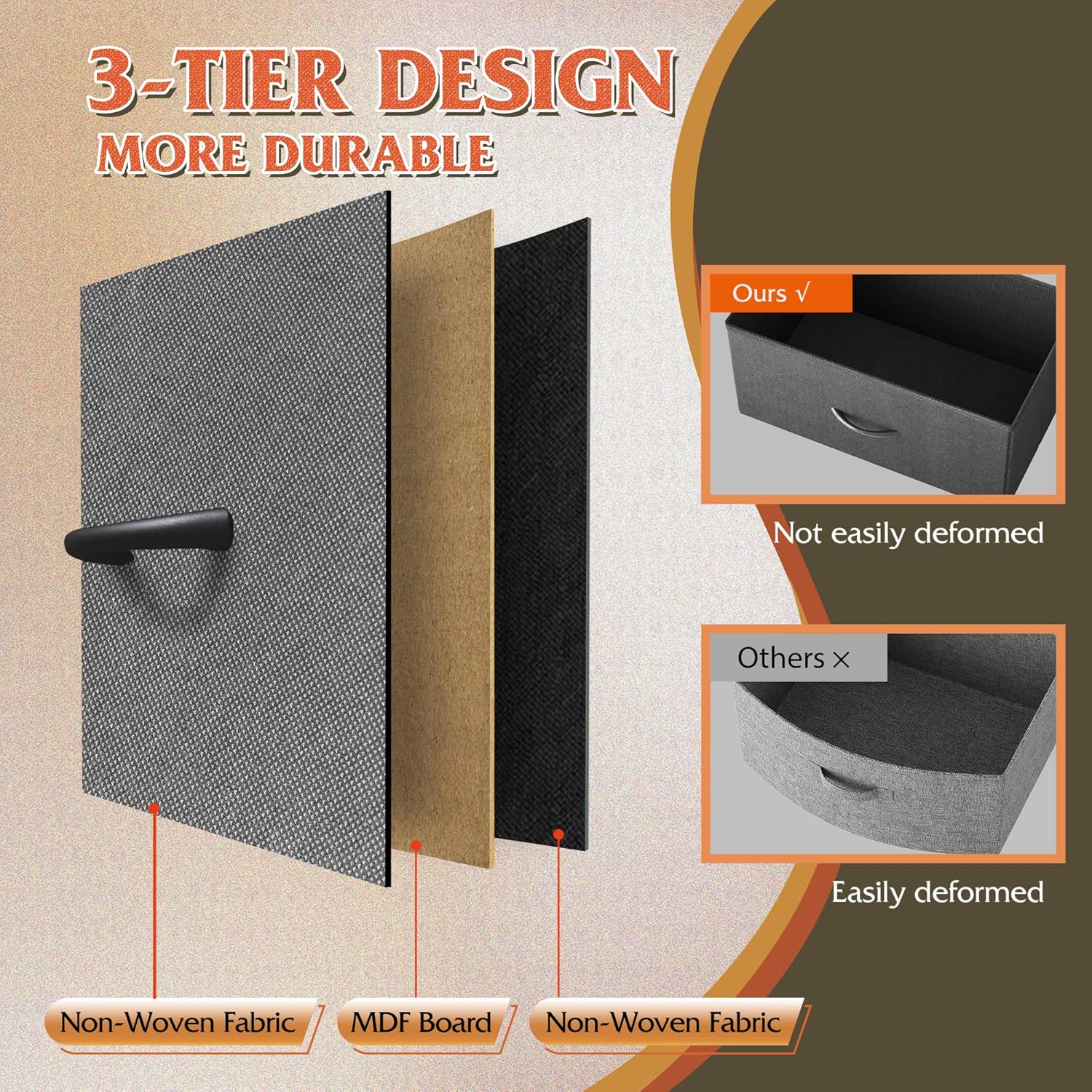 - ✅【Stylish and Versatile】 The furniture is made of sturdy steel frame support, MDF wooden waterproof countertop, and premium non-woven fabric. The back is reinforced with tension bars to enhance overall stability, making the drawer very easy to slide in and out and align correctly. Ensure safe and worry free use. The wooden top can bear up to 70 pounds, providing a sturdy surface for items such as televisions or display vases, lights, and books