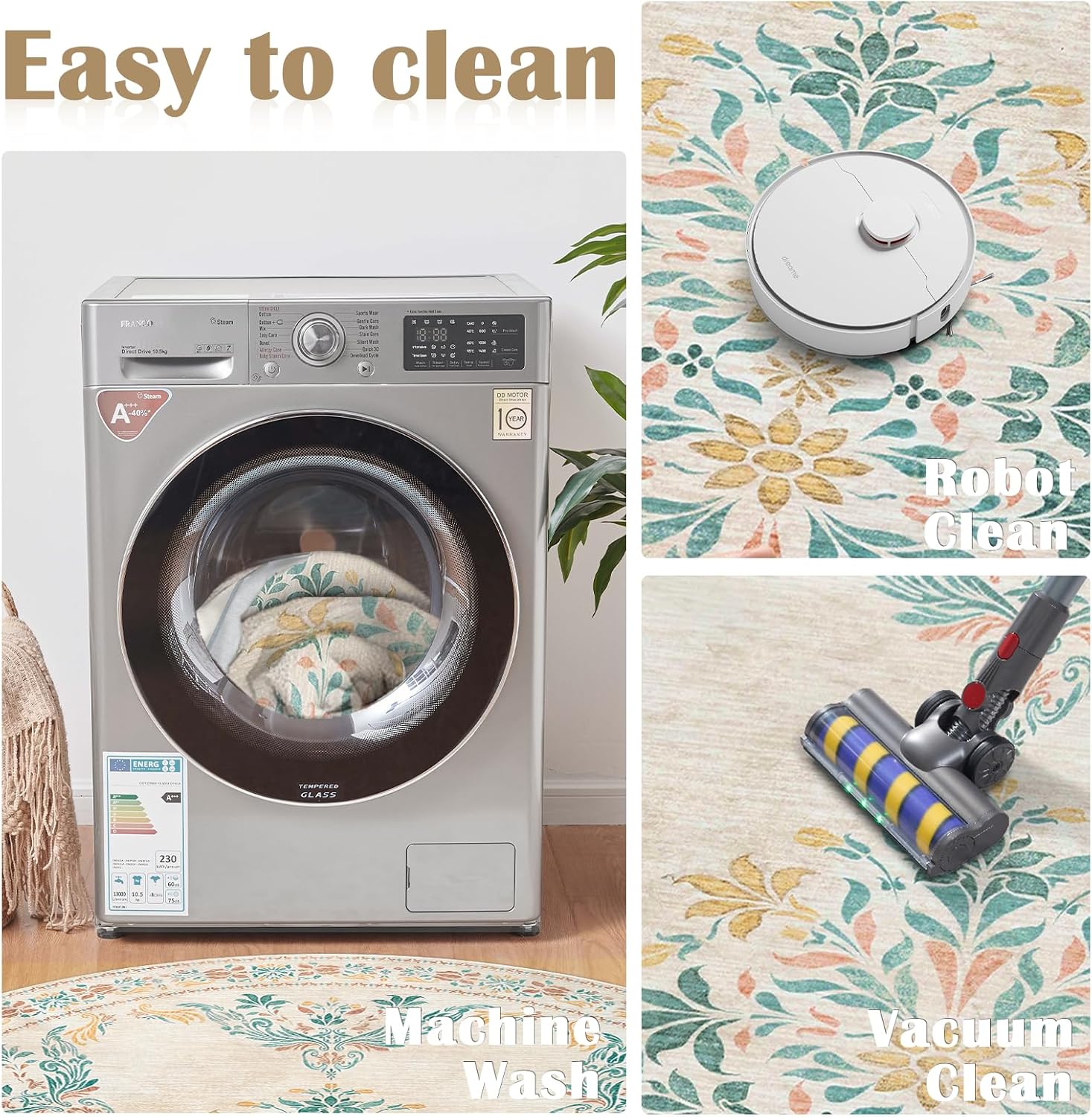- Easy to Clean: With its easy-to-clean surface, Jinchan rug requires only minimal effort to keep it fresh. Use a handheld small vacuum cleaner to remove the dust or hair for daily cleaning. Machine wash with cold water on gentle cycle