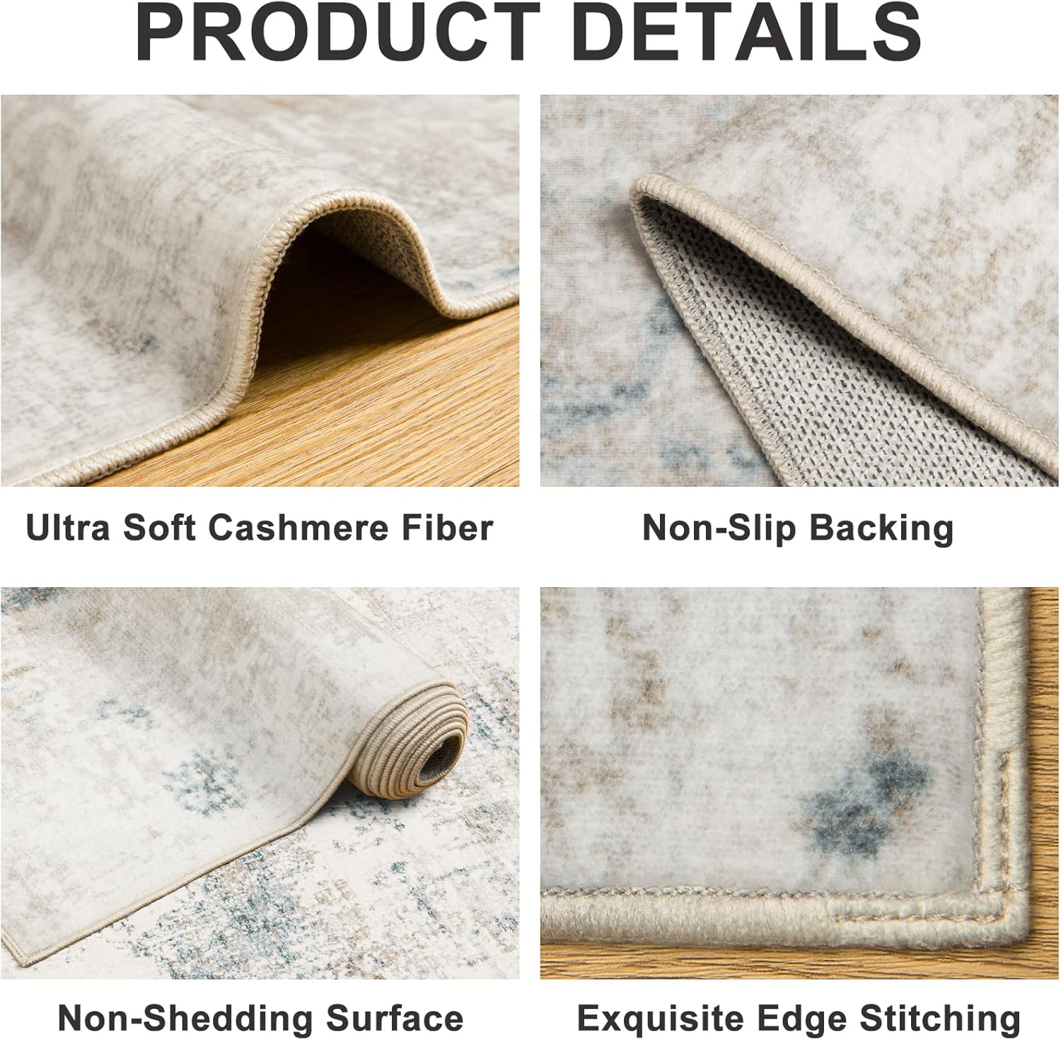 Area Rugs Living Room Rug - 4x6 Washable Modern Abstract Soft Neutral Non-Slip Carpet Large Indoor Floor Stain Resistant Thin Carpets for Bedroom Dining Room Farmhouse Nursery Home Office Multi