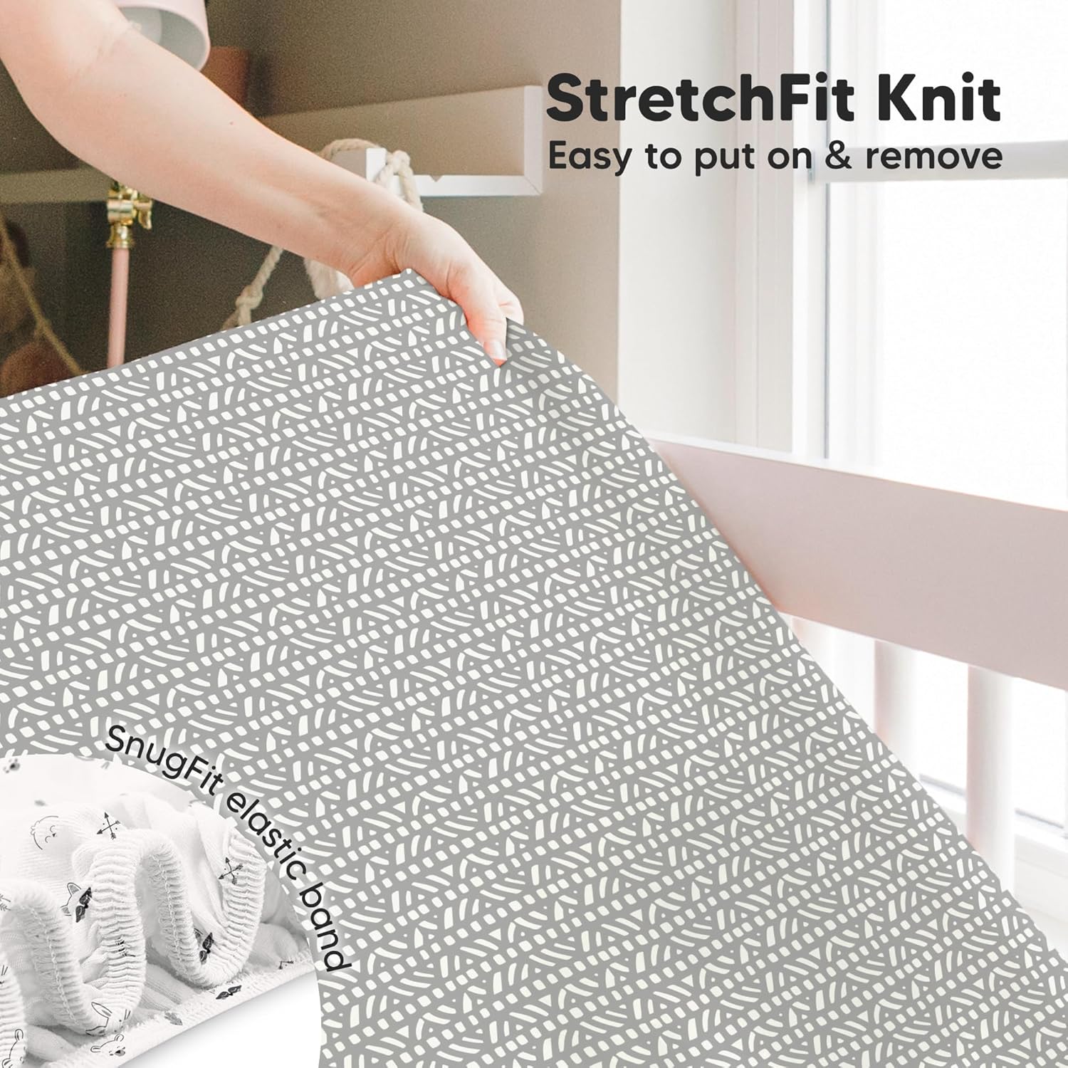 - Easy To Put On - Our KeaBabies Isla Fitted Crib Sheet uses SnugFit Tech, a smart fabric knit that allows the fabric to stretch when you are fitting the bed sheet onto the crib mattress, for easy fitting and removal of the crib sheet. No more struggling with rigid fabric.