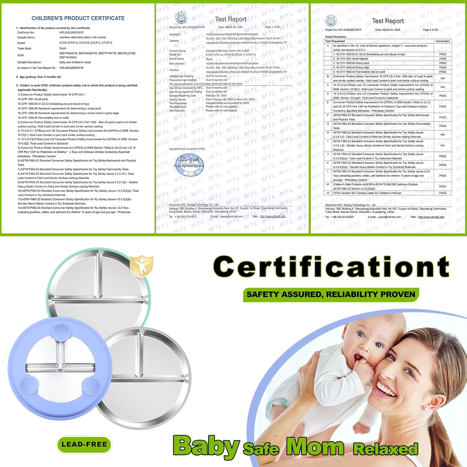 - Anti-Spill Suction Plates: The suction plates for baby feature a 2-in-1 design, a detachable stainless steel toddler plate paired with a non-slip silicone base. The suction base is holds well, helps reduce spills and tips, even for the most active toddlers