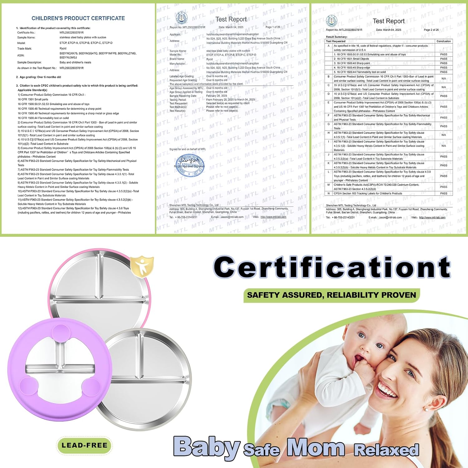 - Safe Construction & Durable: Rycid stainless steel toddler plate made from premium 304 rounded edges stainless steel, these stainless steel plates for kids are BPA-free, lead-free, and plastic-free for ultimate food safety. With dishwasher-safe and withstand high temperatures without warping.