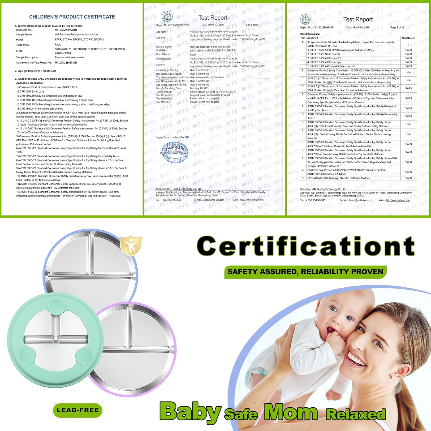 - Safe Construction & Durable: Rycid stainless steel toddler plate made from premium 304 rounded edges stainless steel, these stainless steel plates for kids are BPA-free, lead-free, and plastic-free for ultimate food safety. With dishwasher-safe and withstand high temperatures without warping
