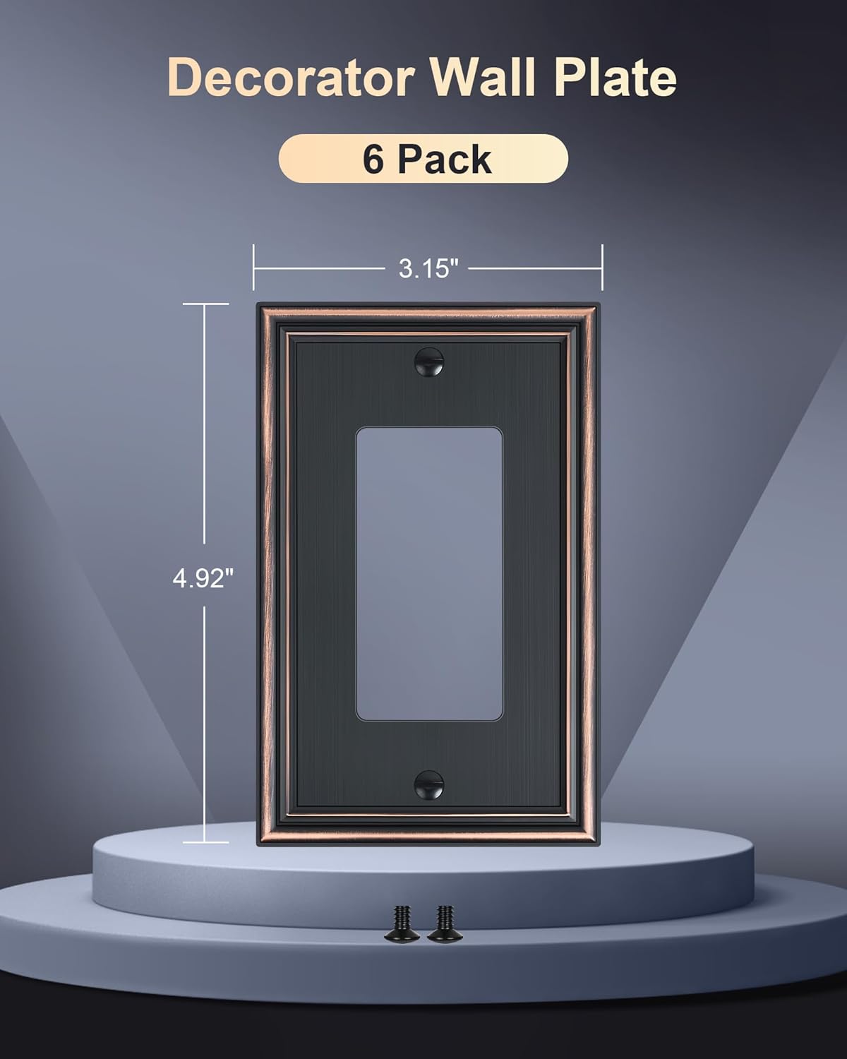6-Pack Decorator Outlet Cover Plate, Aged Bronze Decorative Switch Plates and Outlet Covers, Durable Zinc Alloy Wall Plates for Electrical Outlets, Receptacle, GFCI Outlet, Dimmer Switch