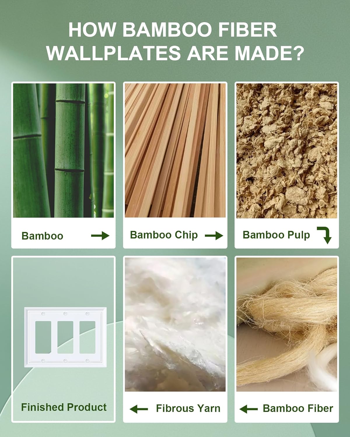 - Natural Bamboo Fiber Material - The wall plate covers are made from sustainable and environmentally friendly bamboo fiber, much thicker and more robust than plastic covers, easier to clean. Resistant to heat, moisture, and corrosion, ensuring it remain a stunning addition to your home for years to come.