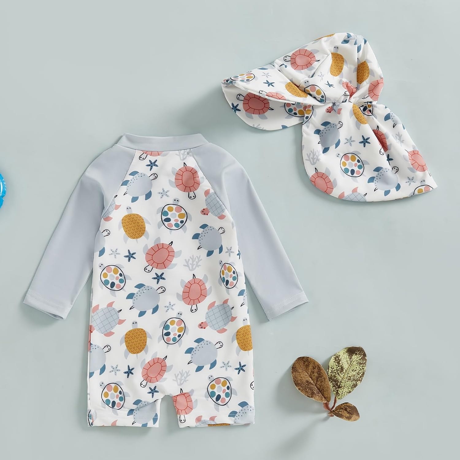 - Design: Toddler bathing suit boy, infant long sleeve swimsuit boy, round neck, back/front zipper closure for easy on and off, newborn swimsuit boy, dinosaur/marine animal print, super cute and lovely, your little boy will stand out in the crowd
