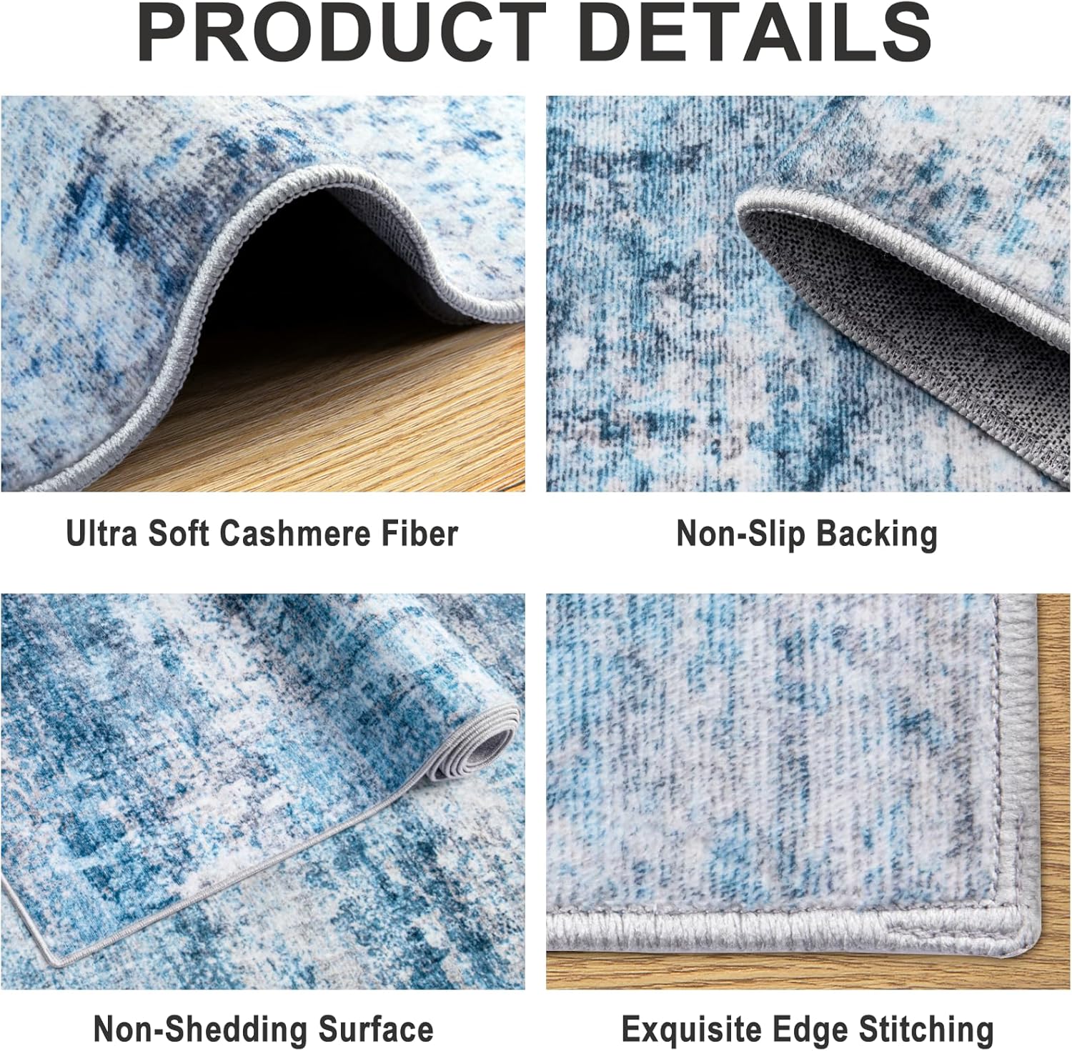 Area Rugs 10x14 Living Room - Washable Rug Modern Abstract Soft Large Neutral Non-Slip Carpet Indoor Floor Thin Carpets for Bedroom Dining Room Farmhouse Nursery Home Office Blue Grey