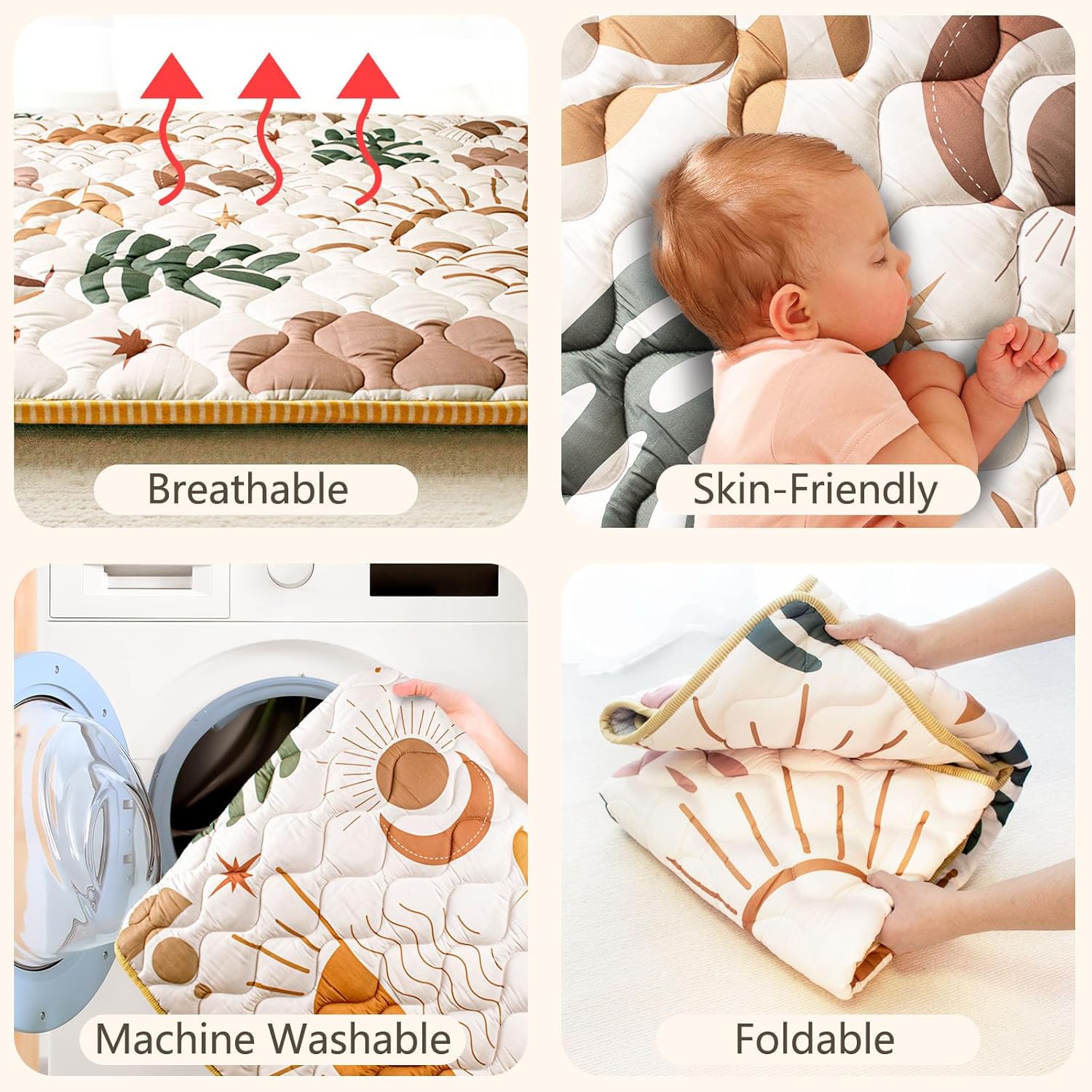 - [Quick Recovery]: Our play mat is vacuum-packed to ensure cleanliness and safety during shipping, which may cause temporary creases or flattening. To help it regain its full shape quickly, simply use low-temperature ironing or gently machine wash and air dry