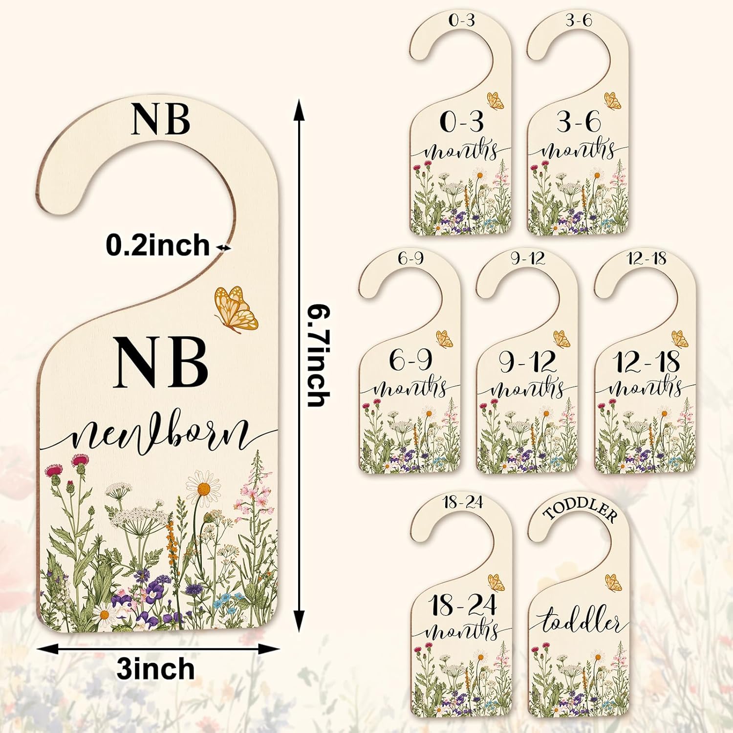 Whaline 8Pcs Wildflower Baby Closet Size Dividers Vintage Floral Leaves Hanging Wood Baby Closet Organizer Newborn to 24 Months Thicken Baby Wardrobe Organizer for Home Nursery