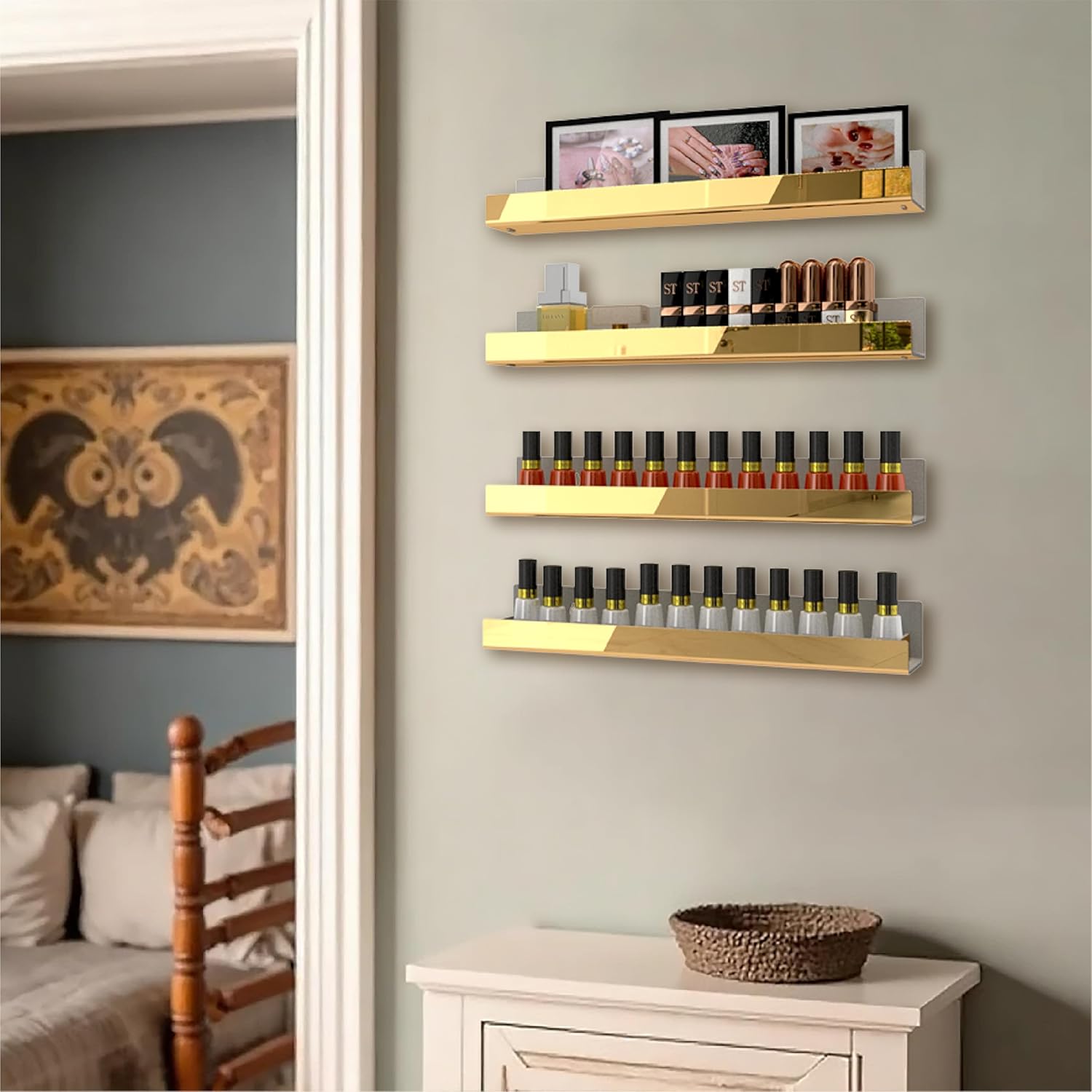 - Great Gift-The modern wall-mounted organizer can solve the problem of misplacing the nail polish for girls. It is an ideal gift for girls, wives and mothers, It is also a perfect display in the bedrooms, bathrooms, salons, retailers and offices.
